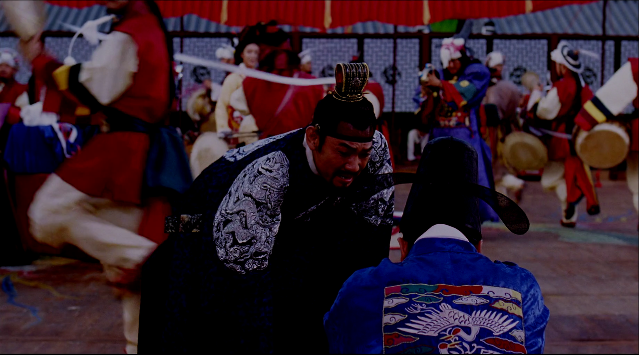장생과 공길이 공연을 하는 날, 대궐 마당은 왕을 비롯하여 대왕대비와 궁중 궁녀들, 그리고 대신들로 자리가 가득 찼다. 그곳에서 공길은 폐비 윤 씨 역을 맡아 공연을 시작한다. 이야기가 점점 클라이맥스로 향하여 폐비 윤 씨가 사약을 받고 죽은 장면에 이르자 마침내 왕은 참아왔던 울분을 일시에 터트린다. 그의 광기에 찬 행동을 보고 대왕대비는 쇼크로 죽으며, 궁중은 이제 피바람의 전조에 휩싸인다. 대신들은 이제 더 이상 광대 패거리를 대궐 안에 두었다가는 무슨 일이 벌어질지 알 수 없다고 두려워한다. 그들은 광대패를 쫓아낼 계략을 꾸민다.