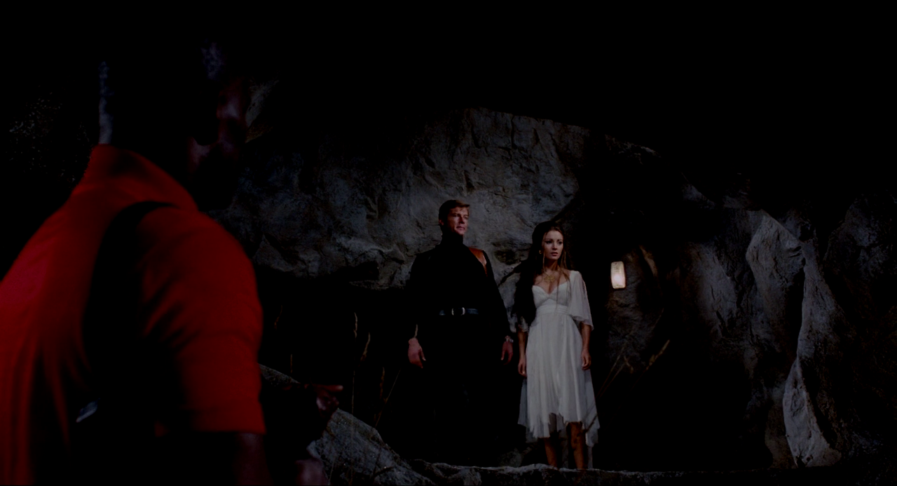 섬에는 점술사가 밧줄에 묶여 독거미에게 살해당할 위기에 놓여있다. 본드는 그녀를 구출하여 지하 연구시설로 도망친다. 그곳에는 미스터 빅이 기다리고 있었다. 본드는 점술사와 함께 고정 장치에 묶여 상어가 있는 풀로 옮겨지지만, 구속장치를 풀고 탈출하는 데 성공한다. 그리고 미스터 빅을 상어에게로 던져버린다. 사건을 해결한 본드는 점술사와 함께 배를 타고 육지로 향한다. 육지에 도착한 두 사람은 느긋이 기차로 시가지에 돌아가려 한다. 느긋하게 여행을 즐기는 두 사람에게 의수를 한 남자가 습격해 온다. 그러나 본드는 의수를 파괴하고, 그 남자를 열차 창밖으로 던져버린다. 그리고는 다시 점술사와 즐거운 시간을 갖는다.
