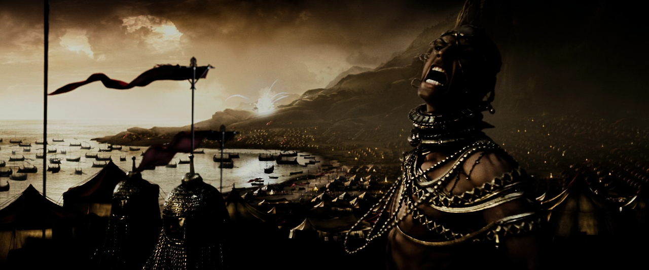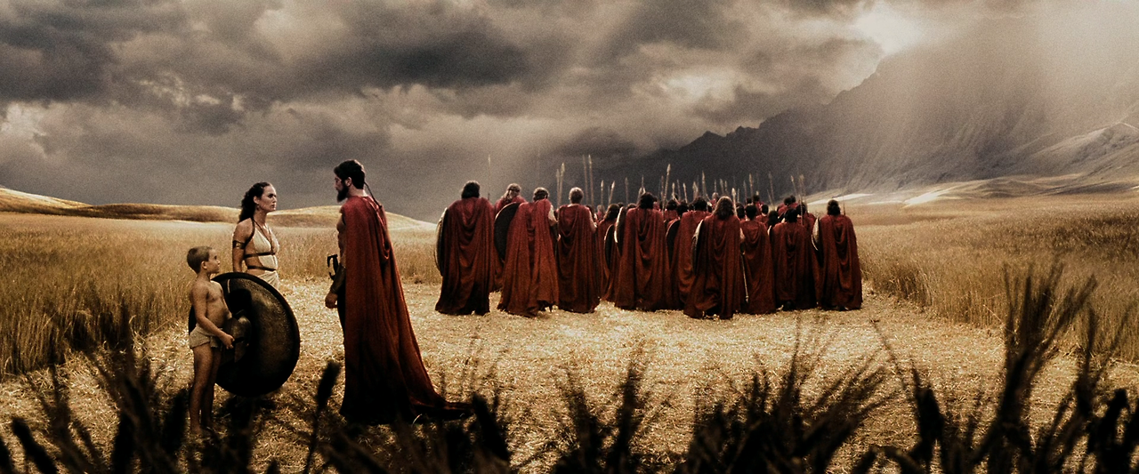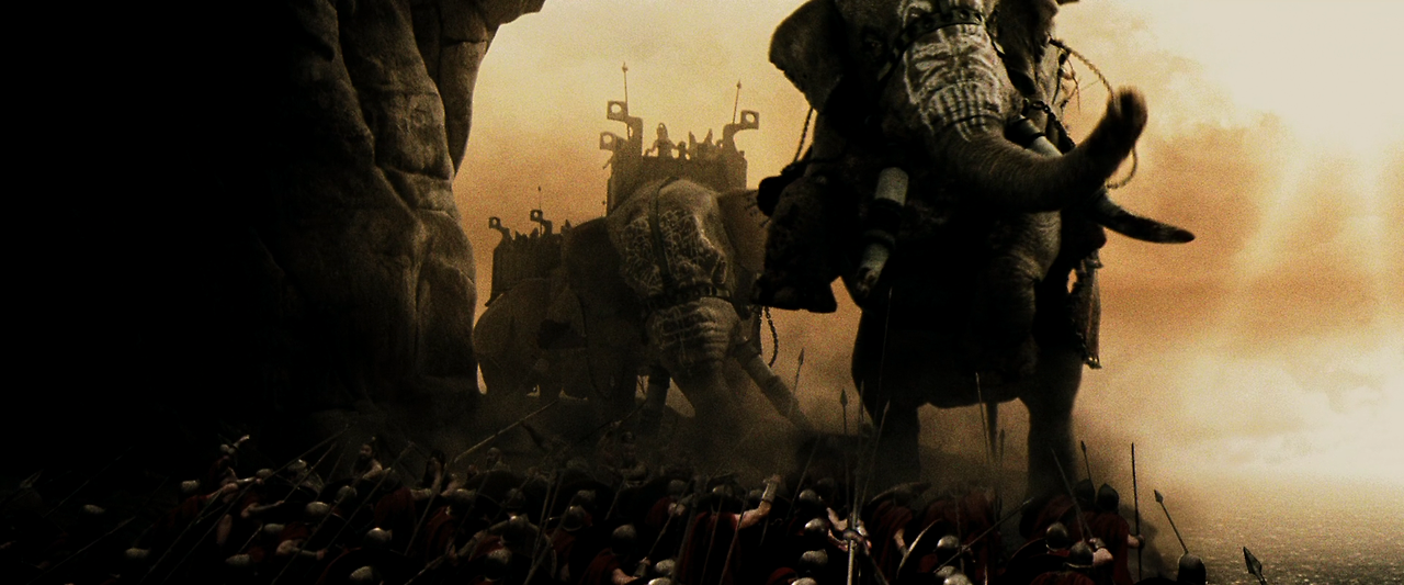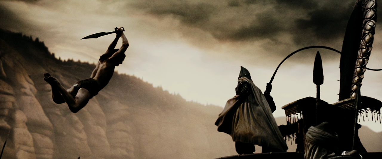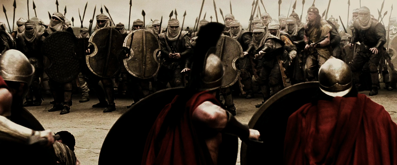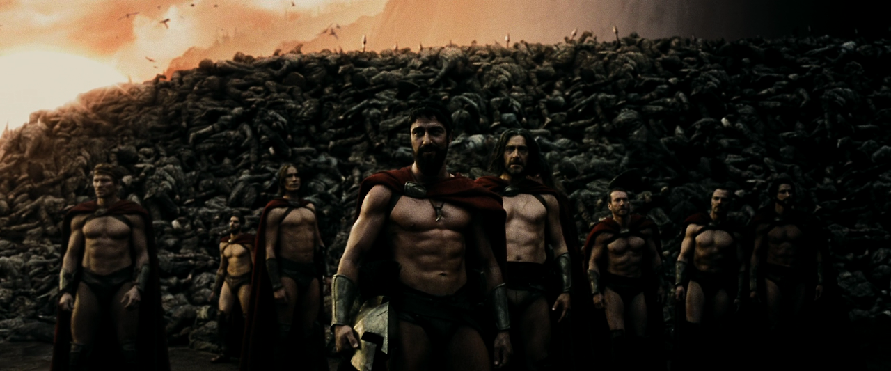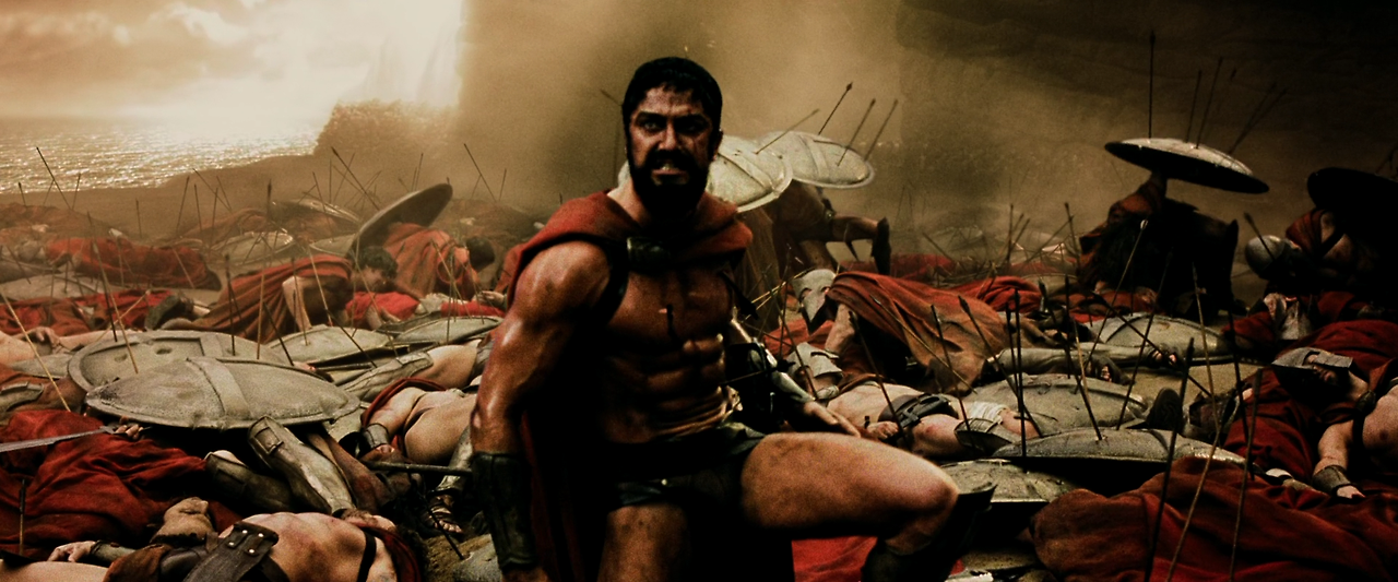 영화 <300>은 페르샤의 2차 침공에서 페르샤 수만 대군과 맞서 스파르타 왕과 근위병 300명이 처절한 전투를 벌인 테르모필레 전투를 소재로 한 작품으로서, 2006년 미국에서 제작되었다. 이 영화는 그래픽과 정지 화면, 그리고 슬로비디오를 적절히 활용하여 아름답고 처절한 폭력 미학을 완성하였다는 평가를 받고 있다.