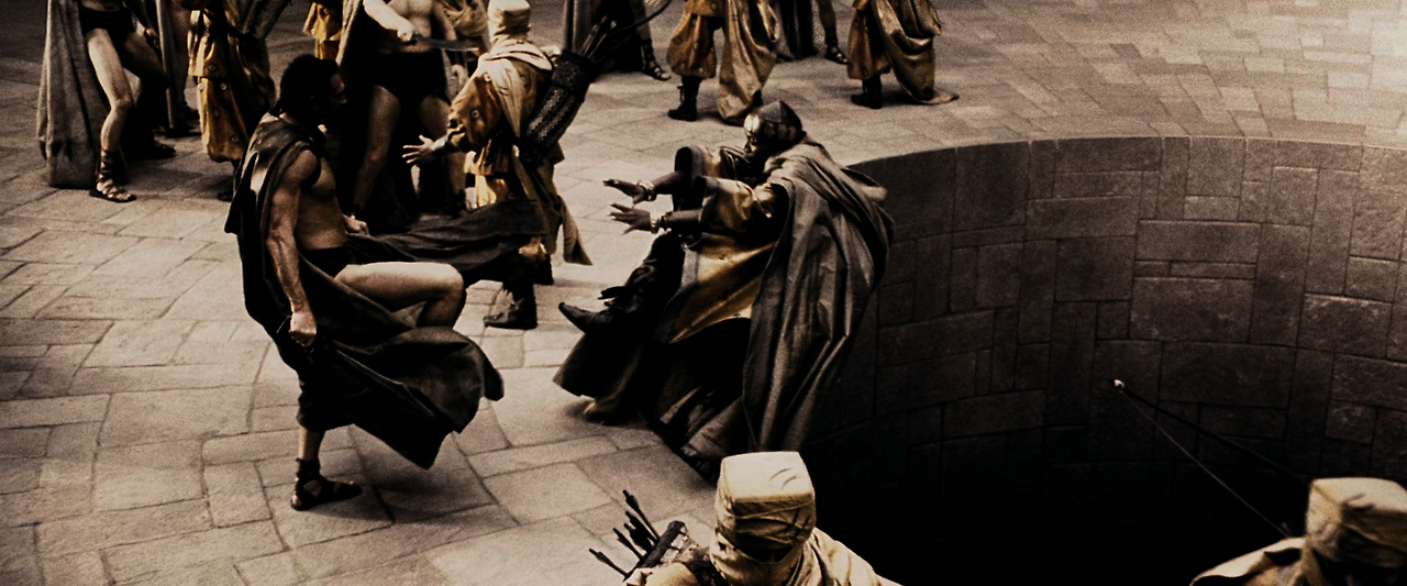 기원전 480년, 스파르타 왕 레오니다스 앞에 페르시아 제국(아케메네스 왕조)으로부터 사신이 찾아와 페르시아에게 복종하라고 거만하게 말한다. 레오니다스는 이를 거부하고 사신을 우물에 던져 죽여버린다.