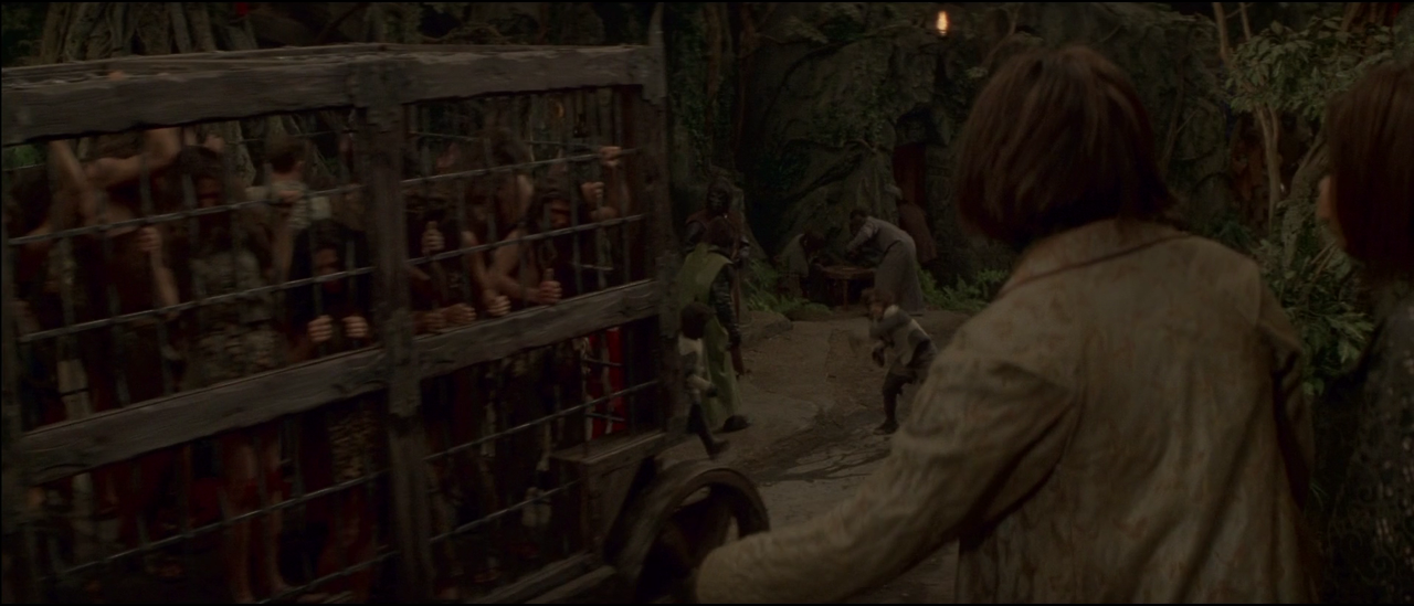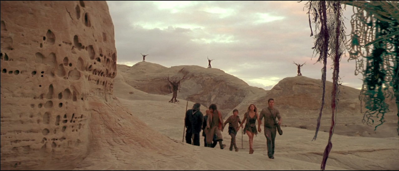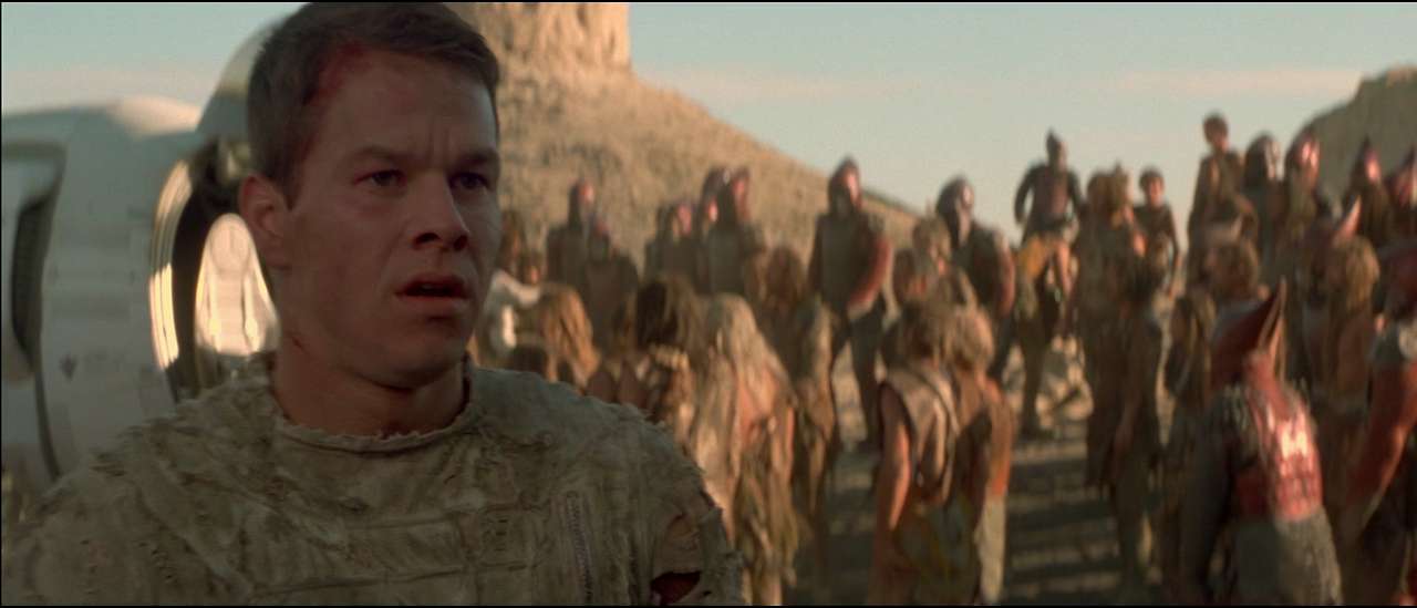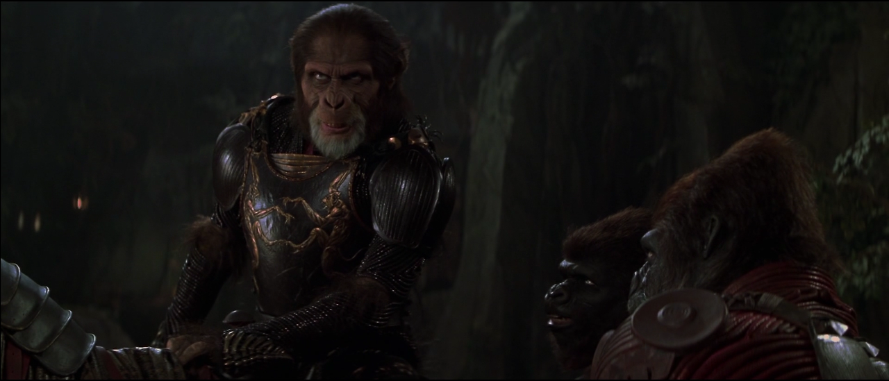 원숭이들의 지도자인 시저는 강력한 힘을 가졌다. 원숭이들과 싸우며 동굴로 들어간 레오는 시저와 대결을 벌이지만 상대가 되지 않는다. 레오가 위기를 맞이하는 순간 우주에서 행방불명되었던 침팬지 페리그리즈가 탄 우주 폿이 도착한다. 페리크리즈는 원숭이 시대를 연 선조로서, 이곳 원숭이들로부터는 신으로 숭상받고 있다. 레로는 페리크리즈의 도움으로 원숭이 군대를 퇴치하고, 고향 지구로 돌아가기 위해 페리크리즈와 함께 우주 폿에 오른다.