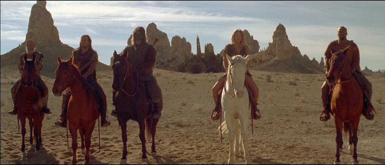 포악한 원숭이에 대응하여 미개한 인간들을 이끌고 싸우는 전사
