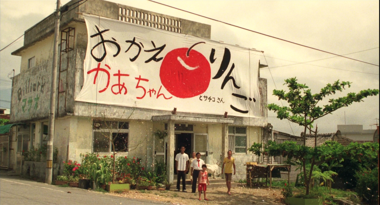 이 이야기에서 직접 이야기하지는 않지만, 아마 엄마는 이전에 미군을 상대로 하는 기지촌 여성이었던 것 같다. 그래서 켄지는 흑인 병사와의 사이에서, 그리고 사치꼬는 백인 병사 사이에서 태어난 자식들인 것 같다. 그리고 막내 미에꼬는 지금의 남편인 ‘아빠’와의 사이에서 태어난 딸이다. 이렇게 3남매는 모두 아빠가 다르다. 그렇지만 이 가족들에게는 어떤 그늘도 보이지 않는다. 이 영화는 이러한 가족들이 안고 있는 그늘들을 코믹하게 그리면서 희망을 보여주고 있다.