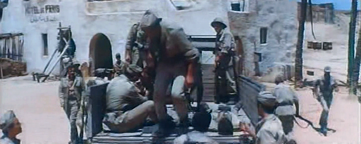 밸리 대위의 지휘 하에 삼밴스는 부하들을 이끌고 특공 작전에 나선다. 특공대는 이태리 군 연료기지를 점령한다. 이때 독일군이 연료를 보급받기 위해 이곳으로 오고 있다는 정보를 접하고, 특공대는 이곳에서 이태리 군으로 위장하여 독일군의 동태를 살피기로 한다. 특공대원들은 모두 이태리 군복으로 갈아입고 이태리 군으로 위장하여 독일군을 맞이한다.