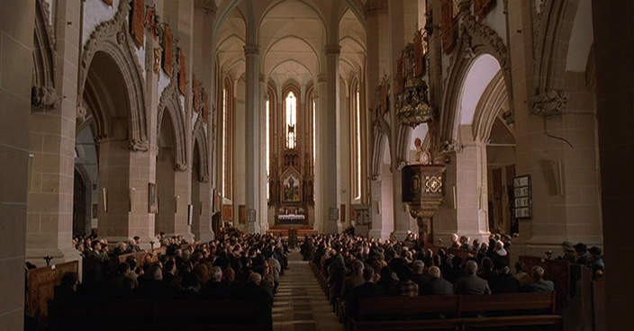 이 영화에서는 또 이런 장면도 나온다. 유대인 수용소에 매일 수용되는 사람은 많은데, 학살하는 데에는 시간이 걸린다. 사람을 대량으로 죽이기 위해서는 가스실로 넣어 독가스를 주입하는데, 그렇게 하더라도 시간이 걸린다. 그래서 과학자들에게는 더 좋은 독가스, 그러니까 더 빠른 시간에 더 효과적으로 사람을 죽일 수 있는 독가스를 만들어내라 재촉하고, 과학자들은 서로 경쟁적으로 독성이 강한 가스를 만들어내고는 자신이 만든 독가스가 더 좋다고 자랑하곤 한다. 그리고 수용소 소장들과 근무자들은 독가스 공급기지에 와서는 서로들 자신에게 더 많은 독가스를 배급해 달라고 조른다. 마치 군대에서 식량을 더 많이 타가기 위해서 다투는 것과 같은 광경이다.