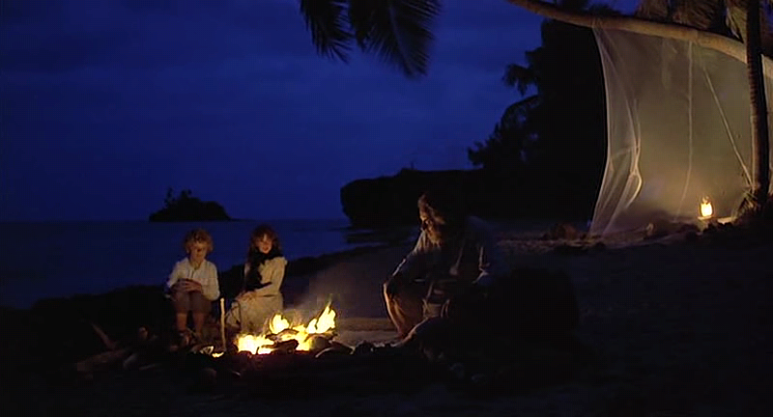 리처드와 에믈린을 태운 보트는 정처 없이 표류하다가 심한 폭풍우를 만난다. 정신을 잃은 이들이 깨어보니 배는 부서진 채로 어느 섬의 바닷가로 표류해 있다. 다행히 리처드와 에믈린, 그리고 패드 모두 목숨을 건졌으며 별다른 부상도 없다. 그들이 도착한 섬은 아마 무인도인 것으로 보인다. 리처드와 에믈린은 패드의 보호 하에 섬에서 살아간다. 두 아이는 말썽을 부리지만 마음씨 너그러운 패드는 싫은 기색 없이 아이들을 보호하며 잘 키운다. 그러던 어느 날 리처드와 에믈린이 잠자고 있는 패드에게 장난을 거는데, 패드가 움직이지 않는다. 아무리 흔들어도 아무런 반응이 없다. 패드가 독충에 물려 죽은 것이다. 그러나 아이들은 아직 ‘죽음’이란 것을 모른다. 아무리 흔들어도 패드가 반응이 없자, 마침내 아이들도 그가 돌아올 수 없는 길로 떠난 것을 이해하게 된다.