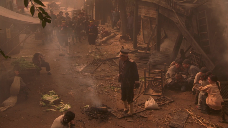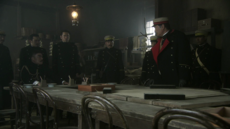 드디어 청일전쟁이 시작되면서 아키야마 형제와 시키는 각자의 입장에서 이 전쟁과 관련을 가진다. 청일전쟁에서 승리한 일본 앞으로는 다시 러시아의 위협이 다가온다. 드라마에서는 청일전쟁에 있어서 특히 해전 장면이 많이 등장하는데, 이때 청나라는 서태후의 사치와 향락으로 인해 군함의 포탄을 살 돈이 없어 일본 해군에 패하는 이야기가 나온다. 사실 이때 청나라의 패전은 비단 무기뿐만 아니라 부정부패와 위계질서의 붕괴 등으로 인한 군의 총체적인 부실 때문이었다는 것이 일반적인 평가이다. 그럼에도 불구하고 이 드라마에서는 리훙장과 그가 이끄는 중국군이 나라를 위해 용감하게 싸우는 것으로 좋게 묘사되고 있다.