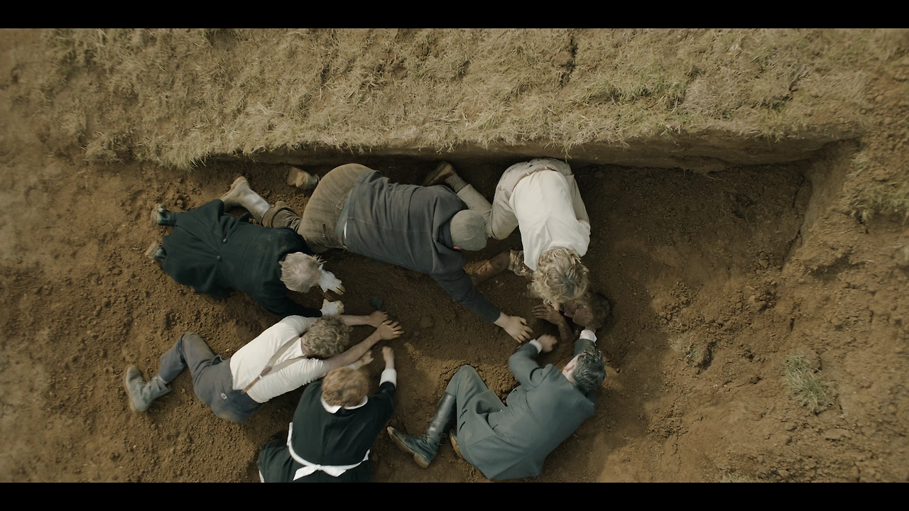제2차 세계대전을 앞둔 1939년, 영국 서포크 주의 지주인 에디스 프리티는 자신이 소유하고 있는 우드 브리지 근교의 새턴 푸에 있는 큰 분묘의 발굴을 그 지역에서 독학으로 발굴가가 된 버질 브라운에게 의뢰한다. 당초엔 에디스가 브라운에게 그가 이프스비치 박물관에서 받고 있는 것과 같은 수준의 임금을 제시하지만, 불충분하다고 거부되자 12%를 인상하여 주급 2파운드로 발굴일을 맡기게 된다. 브라운은 정규교육이라고는 12살이 끝이었다. 그렇기 때문에 그는 발굴에 있어서의 전문적인 능력에도 불구하고 주위로부터 정당한 평가를 받지 못하였다.