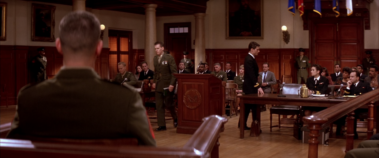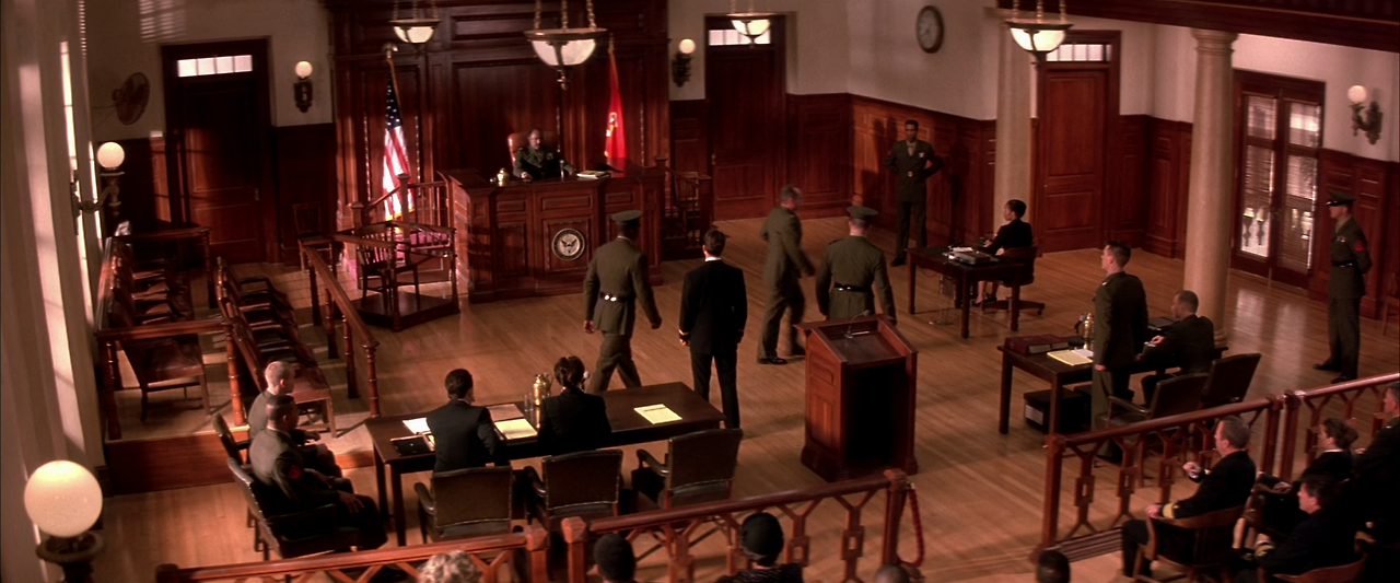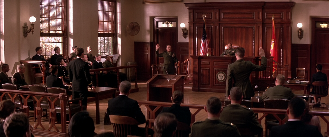 다니엘 캐피 중위(톰 크루즈 분)는 하버드 대학 법대를 수석으로 졸업한 재기 발랄한 청년이다. 그의 아버지는 하버드 대학 법대 명교수 출신으로 미국 법무장관까지 역임한 법학자이다. 가히 명문 법조 집안이라 할 것이다. 야구에 열성인 캐피는 사건의 개요에 대해 듣고는 단순한 사건이라면서 재판을 쉽게 끝내자고 한다. 즉 유죄를 주장하는 검사 측과 타협하여 유죄를 인정하되 1년 정도의 짧은 형기로 합의하자는 것이었다. 그렇지 않고 끝까지 재판으로 갈 경우 20년 정도의 징역이 예상되는데, 이 재판이 이길 가능성이 거의 없다는 것이 그 이유였다. 그러나 갤러웨이 소령은 법무장관이었던 개피의 아버지의 정신을 상기시키면서 진실을 찾아가자고 캐피 중위를 질타한다. 이리하여 갤러웨이, 캐피와 여기에 샘 윈버그 중위를 더하여 3명이 이 재판에 변호사로서 임한다.