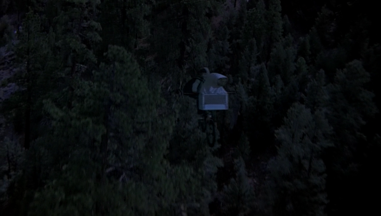 가는 도중에 엘리엇의 자전거에 옮겨 타 마이클과 그 친구들의 도움을 받아 그들은 교외의 숲으로 달린다. 즉시 경찰과 어른들이 이들을 추격해 온다. 그러나 이티 일행이 이들에게 잡히기 일보직전, 이티는 염력을 발휘하여 자전거와 함께 아이들을 공중으로 띄운다. 놀라고 있는 경찰과 어른들을 뒤로하고, 이티와 엘리엇, 그리고 그 친구들은 신나게 자전거로 하늘을 날아 숲 속에 도착한다. 드디어 이티의 연락을 받는 정소에 우주선이 나타났다. 엘리엇과 이티는 마지막 작별 인사를 하고 우주선에 올라탄다. 우주선이 사라진 하늘 저쪽에는 아름다운 무지개가 걸려있다.