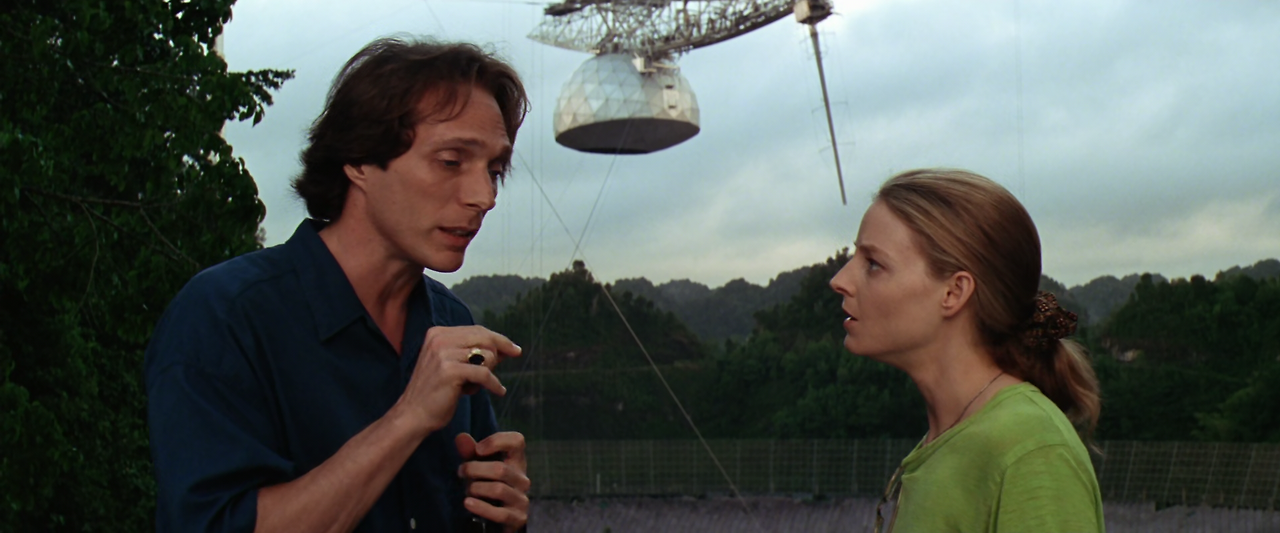 엘리와 과학부 기자인 파머는 알레시보 천문대에서 만난 이후 다시 만나 친하게 되지만, 파머가 신을 믿고 있다는 것을 말하자, 실증주의자인 엘리는 그것을 “오컴의 면도날”(Occam's razor)의 예를 들어 일소에 부친다. 오컴의 면도날이란 “어떤 이을 설명하기 위해서는 필요 이상의 많은 가정을 해서는 안된다”는 지침이다. 그러자 파머는 사랑하는 아버지를 어릴 때 잃은 엘리에게, 아버지를 사랑하고 있었다는 증거는 있는가라며 반문한다.