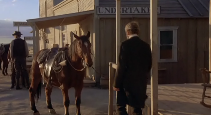 로이는 스스로 의사를 교수대로 데리고 간다. 그때 거스가 나타났다. 로이가 없는 사이 자신이 촌장으로 선출되었다면서, 목을 매다는 것은 살인죄라고 소리 지른다. 로이는 그대로 말에 올라타더니 곁눈질 한번 않고 마을 밖으로 떠난다.