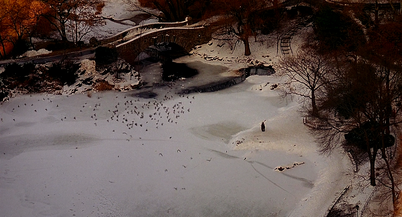 케빈의 아빠는 겨우 케빈이 뉴욕행 비행기를 탔다는 사실을 알게 된다. 그래서 급히 뉴욕에 사는 자신의 형에게 전화를 했다. 그런데 자신의 형은 집수리 중이라 가족 모두 집을 비워 연락이 되지 않는다. 한편 자신이 가족과 떨어져 혼자 뉴욕에 왔다는 사실을 알게 된 케빈은 당황하지 않고 기왕 온 김에 뉴욕 관광이나 해야겠다고 생각한다. 혼자서 센트럴 파크에 도착한 케빈은 그곳에서 비둘기 떼를 돌보는 노숙자 여성(비둘기 아줌마)을 보고 깜짝 놀라 무서워 도망을 친다.