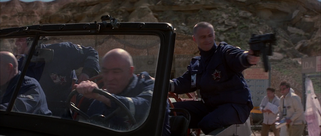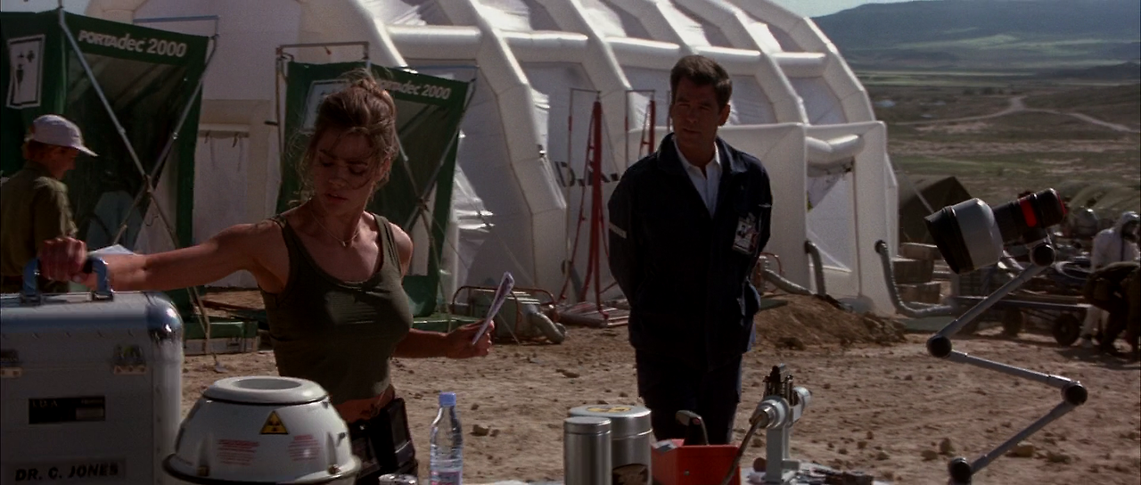 한편 레너드는 카자흐스탄에서 폐기작업을 하고 있는 구 소련제의 핵탄두를 탈취하는 작전을 진행하고 있었다. 현지의 구 미사일 기지에 도착한 본드는 지하의 미사일 사이트에서 레너드 일파가 핵 탄두 하나로부터 위치정보를 발신하는 로케터를 제거하는 광경을 목격한다. 본드는 레너드로부터 핵탄두를 회수하려고 하였으나 결국은 실패하고, 분리된 로케터만을 회수한다. 이곳에서 본드는 핵탄두 해체작업을 하고 있던 여성 과학자 크리스마스 존즈의 협력을 받아 지상으로 탈출한다.