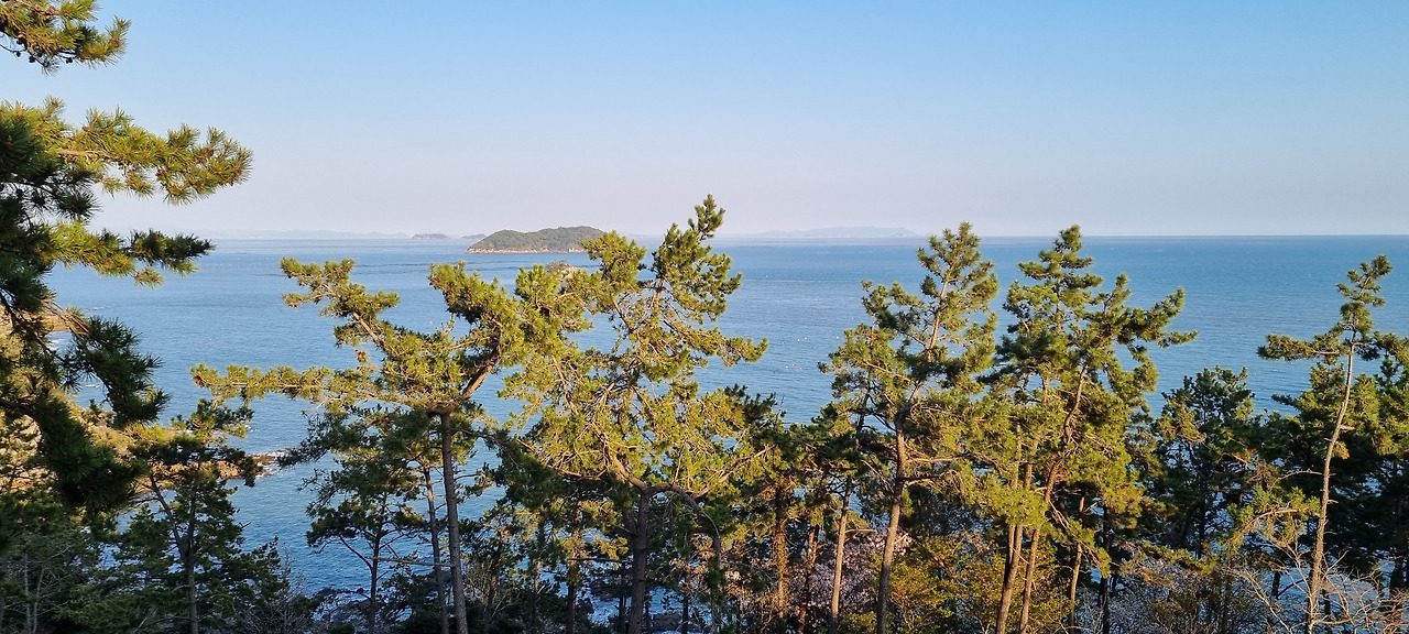 남도진성을 나오니 휴양림까지는 5분도 안걸린다. 오늘 진도 이곳저곳을 돌아다니며 아름다운 바다 풍경을 많이 감상하였다. 그렇지만 이곳 휴양림 숲속의 집 거실에서 내려다 보이는 바다 풍경은 다른 어느곳에 뒤지지 않는다. 거실에 앉아 바다풍경을 내려 보다가 산책을 위해 밖으로 나왔다. 산책길은 산으로 가는 곳과 해변으로 가는 곳 두 가지이다. 해변으로 내려가는 산책길을 택하였다. 편안하게 걸을 수 있는 산책로를 따라 바다쪽으로 내려가면 해변을 내려다보며 걷는 길과 해변으로 내려 가는 계단길이 나온다. 계단을 따라 바닷가로 내려간다. 저 앞바다에는 아름다운 섬들이 떠 있고, 해변은 크고 작은 바위로 덮여 있다.