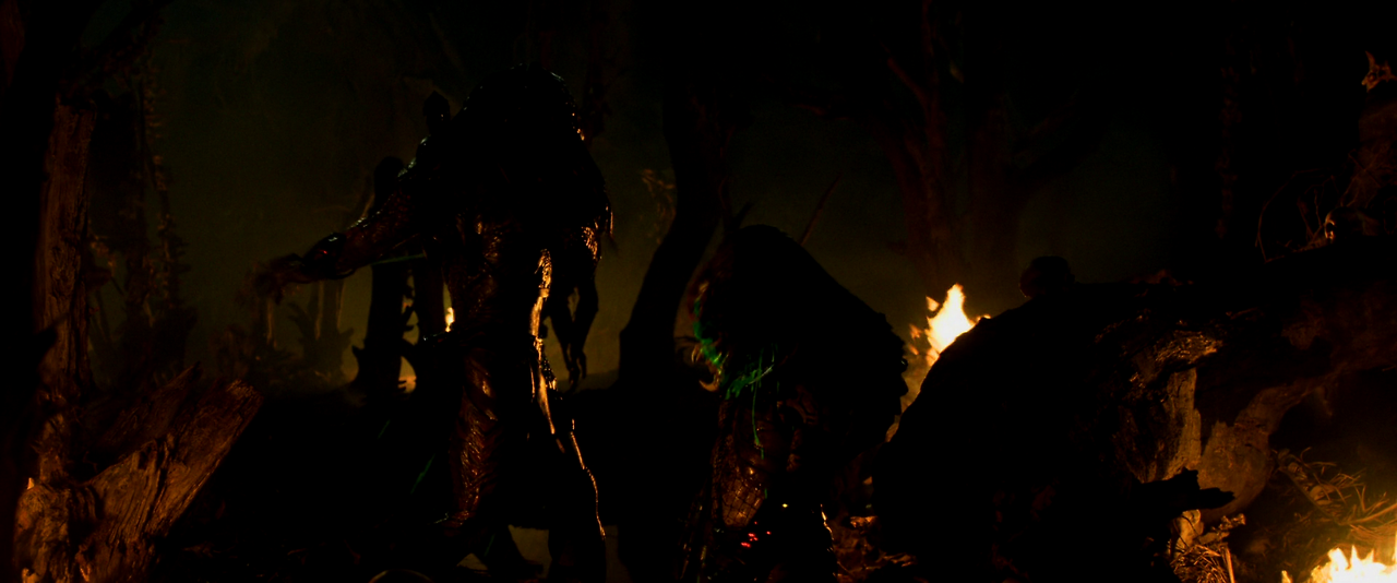 밤이 되었다. 야영을 할만한 곳을 찾았는데, 그곳에서 그들은 여러 개의 사체가 나무에 걸려 있었다. 그것은 마치 전리품인양 전시되어 있는 것 같았다. 야영지 부근에도 그 미지의 생명체가 잠복해 있는 듯하였다. 마침내 그들은 미지의 생명체의 정체를 파악하였다. 그것은 프레데터란 이름의 외계 생명체였다. 이들은 고도로 발달된 과학과 함께 강력한 육체적 힘을 가지고 있을 뿐만 아니라 투명한 상태로 몸을 변환시킬 수도 있었다. 이제 보이지 않는 적과의 싸움이 시작되었다.
