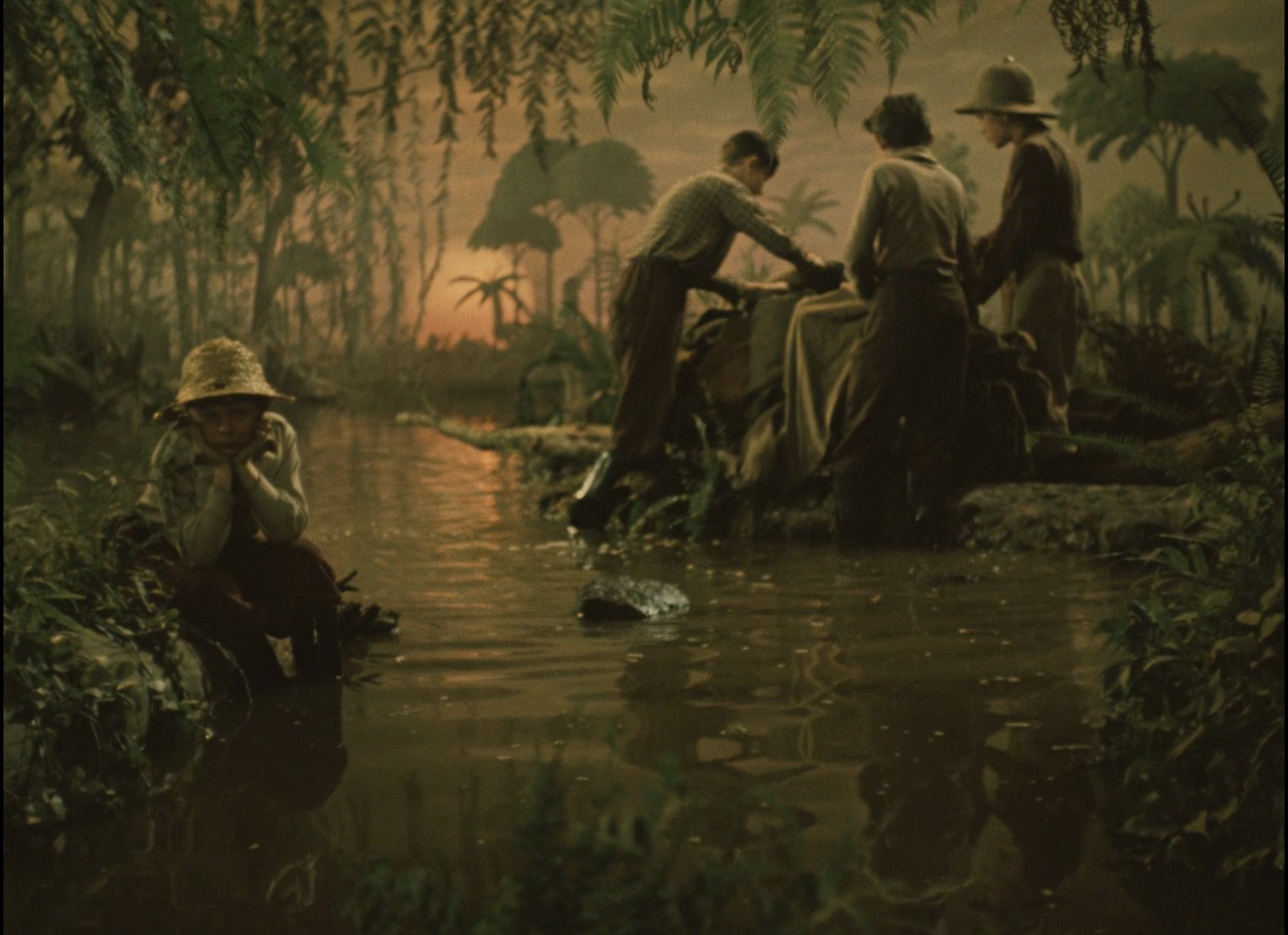 영화의 뒷부분쯤에 가서 소년들은 배에서 내려 작은 연못에서 공룡들과 마주치는 위기를 만나기도 한다. 그렇지만 보통의 모험영화와는 달리 소년들은 손쉽게 공룡으로부터의 위기를 벗어난다.