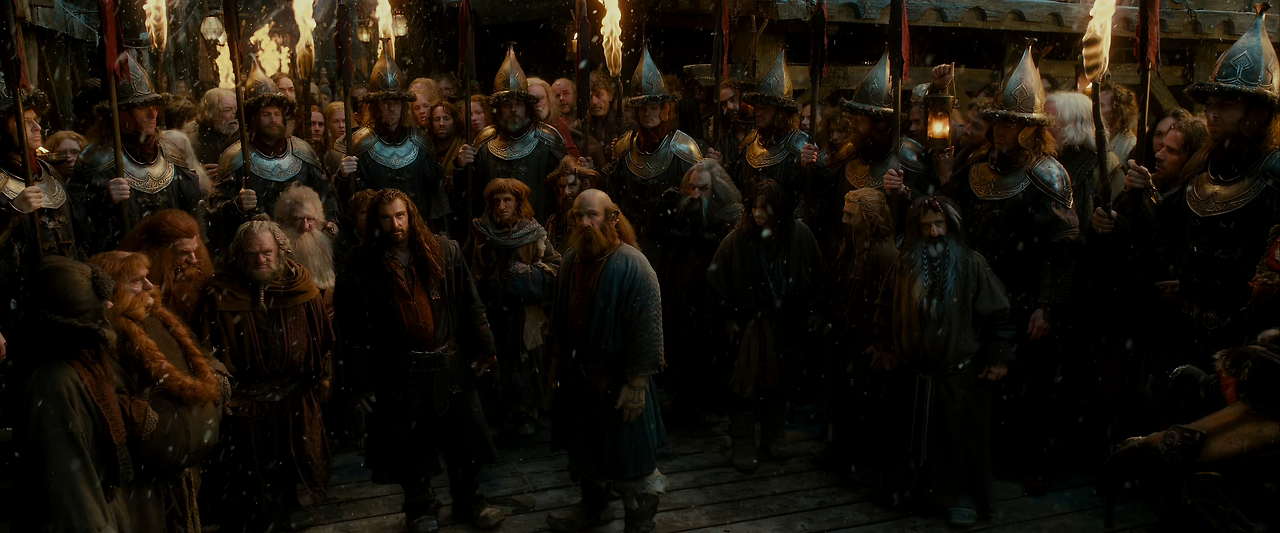 드워프들이 호수 마을의 지도자 몰래 에레보르로 향할 준비를 하는 동안 그들은 킬리의 부상으로 인해 그들의 정체가 탄로 나게 된다. 드워프들은 호수 마을의 지도자로부터 추궁을 받지만, 왕국을 탈환하면 마을의 모든 사람들에게 보물을 나누겠다고 약속한다. 지도자를 비롯한 마을 사람들은 소린의 말에 따르겠다고 하지만, 바르도는 용을 자극하면 마을이 다시 습격당할 위험이 있다면서 드워프들이 왕국을 탈환하는 것을 반대한다.