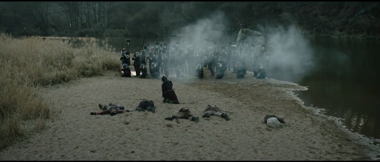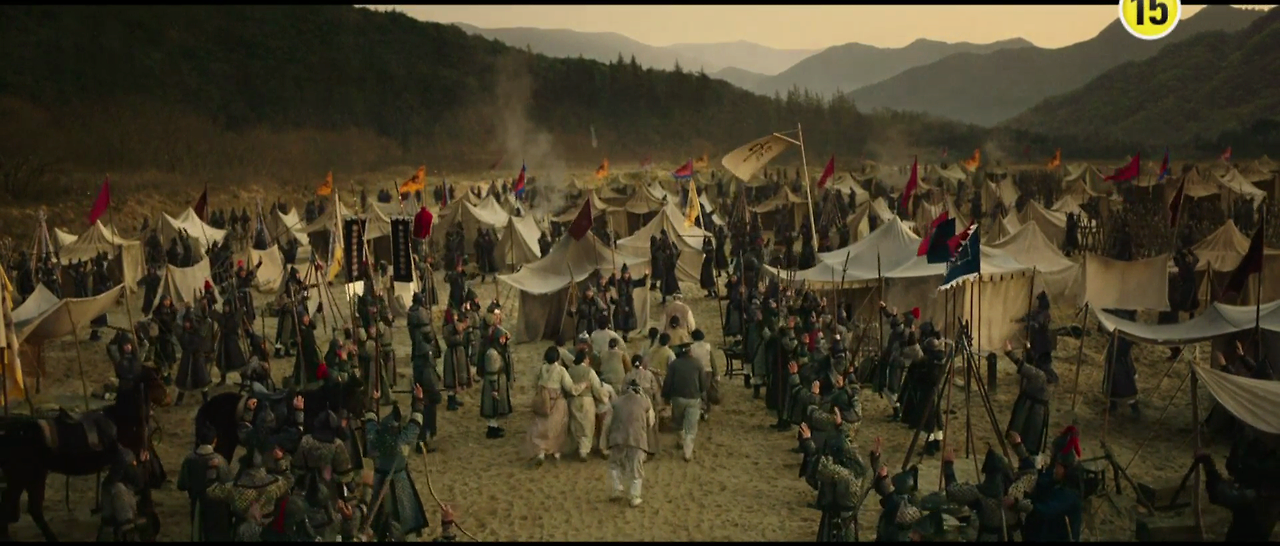 그러나 토우는 그럴 수 없다고 필사적으로 광해를 설득한다. 이때 함께 싸우던 의병이 성밖으로 빠지는 비밀통로를 발견하여 백성과 군사들은 그곳을 통하여 모두 빠져나간다. 뒤쪽에 있는 강을 건넌다면 왜군의 추격을 막을 수 있다. 광해 일행과 백성들은 급히 구한 거룻배를 타고 강을 건너려 한다. 그런데 왜군이 눈치를 채고 추격해 온다. 이대로 있다가는 배로 강을 건너지도 못한 채 왜군에게 당하고 만다. 토우는 비장한 결심을 한다. 광해 일행과 백성들을 보내고 자신과 대립군들이 추격하는 왜군들을 막겠다는 것이다. 토우와 그의 동료들은 총을 겨누고 있는 왜병들을 향해 돌격한다.