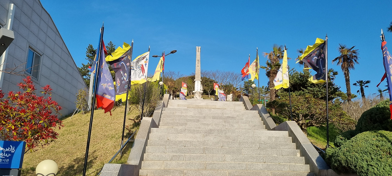 진도대교를 건너오니 오른쪽에 우수영(右水營)이라는 도로안내판이 보인다. 좀 늦었지만 들어가 보기로 하였다. 우수영은 <전라우도 수군절제사>(全羅右道 水軍節制使)가 근무하는 병영이었다. 우수영은 과거의 우수영을 복원함과 아울러 전시관, 기념 조형물 등 다양한 시설을 마련해두고 있다. 아직 완성되지는 않고 공사가 계속 중이라는 느낌도 들었다. 이순신 장군을 기념하는 조형물, 그리고 임진왜란 시 조선수군의 활약을 기념하는 조형물 등이 여기저기 배치되어 있다. 전시관에 들어가 보았다. 이순신 기념관이라 해도 좋을 만큼 주로 이순신 장군의 활약과 관련한 여러 전시물이 전시되어 있다. 그건데 그중에는 고개를 갸웃하게 하는 설명도 있었다. 예를 들면 명량해전에서 4,000명 정도의 왜병을 죽였다고 하는데, 이는 믿기 어렵다.