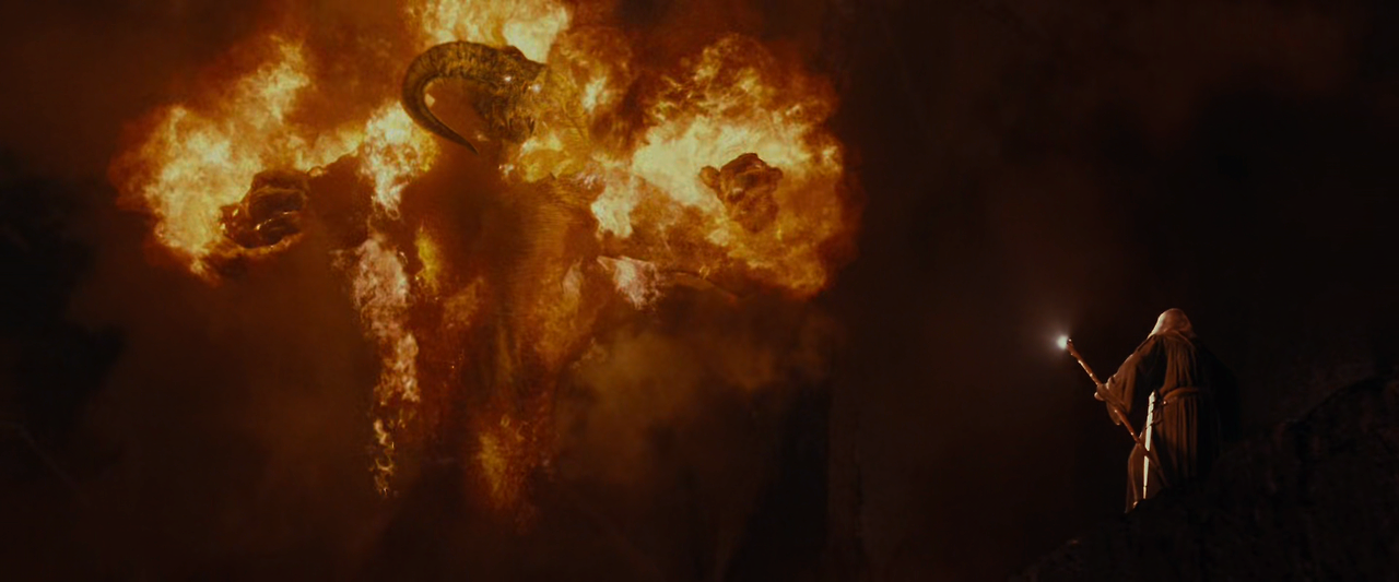 반지를 위해 선택된 아홉 명의 여정은 험난했다. 사루만의 방해로 원정대는 모리아라는 위험한 광산 갱도를 통과해야 했는데, 여기서 오크들의 습격을 받는다. 원정대는 오크들과 싸우면서 계속 도망을 가지만, 오크들의 추격도 집요하다. 원정대는 용암이 흐르는 계곡 위에 걸쳐진 다리까지 피신해 왔지만, 오크들은 그들의 바로 등 뒤에까지 추격해 왔다. 이대로 라면 모두가 위험하다. 이때 간달프가 나서 다른 사람들에게 피하라고 하면서 혼자서 오크들을 막아선다. 간달프가 지팡이를 다리 틈새에 집어넣자 다리가 무너지기 시작한다. 간달프는 무너지는 다리와 함께 용암의 계곡으로 떨어진다.