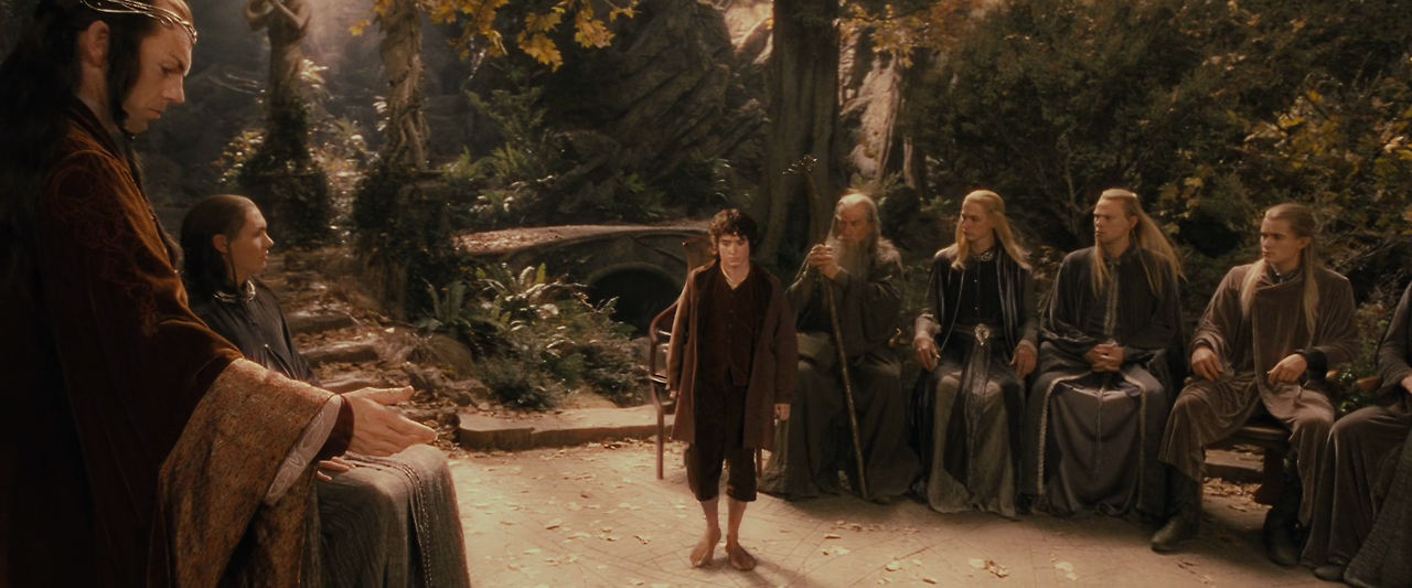 쾌활하고 검술가인 아라고른이 추가되면서 프로도의 여정은 순조롭게 진행되는 것 같았다. 그러나 이들은 사우론의 부하들에게 여러 차례 습격을 받고 그런 와중에서 프로도는 부상을 당하기까지 한다. 일행이 리벤델 궁전에 도착하자 영주인 엘론은 중간계에 있는 모든 종족의 대표들을 불러 모아 반지에 대한 대책을 논의한다. 이 자리에서 프로도는 모드도르 화산 분화구에 가서 반지를 파괴하겠다고 선언하고, 그곳에 모인 다른 종족들은 프로도를 호위하기 위한 원정대를 구성하기로 결의한다. 그리하여 아라고른, 인간인 보로미르, 엘프인 레골라스, 드와프 김리, 호빗인 샘, 메리, 피핀, 그리고 마법사 간달프로 이루어진 9명의 “반지 원정대”가 구성되었다.
