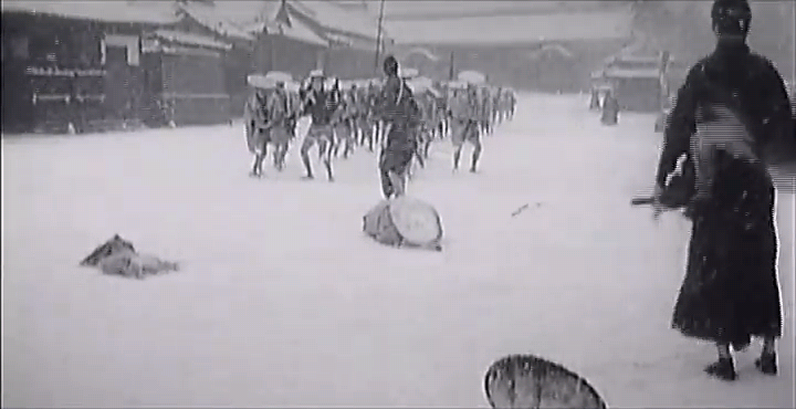 1860년 2월 대로(大老)인 이이 나오스케(井伊直弼)의 암살을 획책하는 미도(水戸) 번의 낭인 무사들은 매일 사쿠라다문(桜田門) 앞에서 등청하는 이이를 기다리며 결행의 기회를 엿보고 있다. 그러나 이이는 그들의 음모를 알아차린 듯이 모습을 보이지 않는다. 낭인 무사들의 두목인호시노 켄모츠(星野監物)는 거사를 일으키려고 모은 낭인들 가운데 누군가가 이이 측과 내통하고 있지 않을까 생각하여 의심스러운 자를 찾아내라고 부하들에게 명령을 내린다.