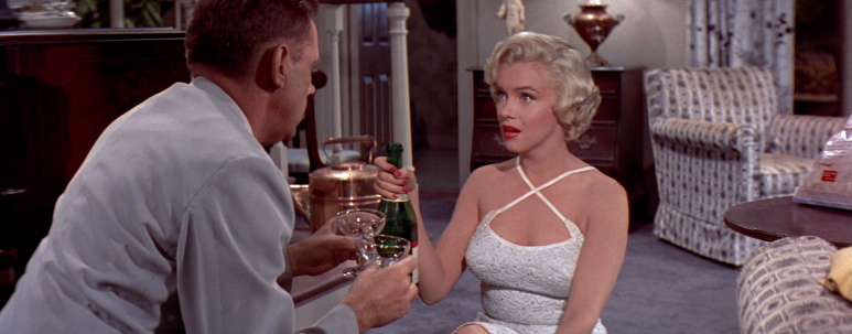 부인과 아들이 휴가지로 떠난 후 바로 아파트 위층에 아름다운 금발 미녀(마릴린 몬로 분)가 이사 온다. 리처드는 그녀를 초대하는데, 그녀가 자신의 방으로 들어가 준비를 하는 동안 리처드는 갖은 망상에 빠진다. 간호사와 연애를 한다거나 자신의 비서와 사랑에 빠지는 등 이런저런 공상을 하는 동안 그녀가 내려온다. 리처드의 마음속에는 그녀와 무슨 일이 생길 것 같지만 그런 일은 생기지 않는다. 그는 두근거리는 마음을 억누르고 태연한 척 가장하면서 그녀에게 접근하지만, 그녀는 그의 그런 행동에 전혀 개의치 않고 그를 스스럼없이 대한다.