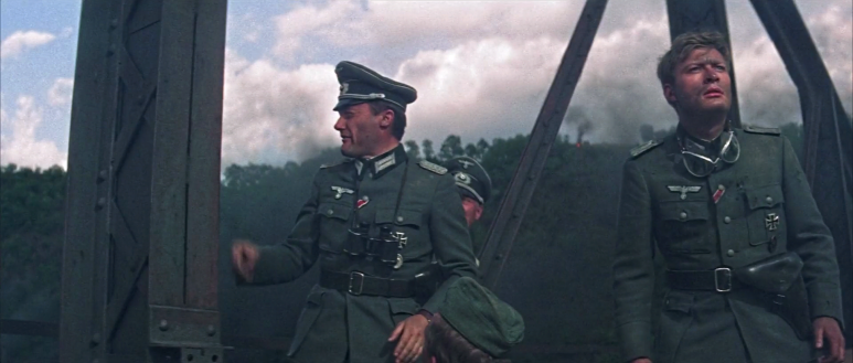 폭약을 설치한 직후 다리 저편에 도착한 연합군이 공격을 개시한다. 크로거 소령은 폭약의 기폭장치를 눌렀으나 폭약은 폭파되지 않는다. 선이 끊어진 것이다. 그는 적의 총알이 빗발치는 속에서 폭약이 장치된 곳까지 가서 손으로 폭약에 불을 붙인다. 드디어 다리 곳곳에 설치된 다량의 폭양은 대폭발을 일으킨다. 검은 연기가 자욱이 솟아오르고, 다리는 연기에 가려 보이지 않는다. 서서히 연기가 걷히는데, 다리는 전혀 타격을 입지 않고 그대로 서있다. 민간용 폭약이라 위력이 약했던 것이다.