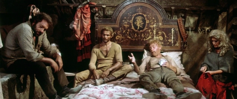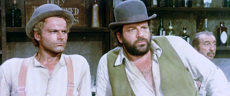 밤비노(버드 스펜서 분)가 사막을 여행하면서 모닥불을 피우고 있는 4명의 일행을 만난다. 그들 4명은 조무래기 범죄자들인 것 같다. 밤비노는 이들에게 음식을 얻어먹은 후 돈과 말까지 뺏아 길을 떠난다.