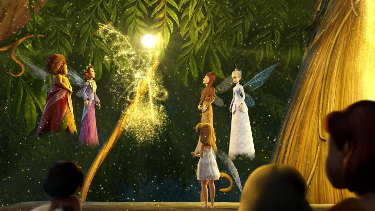 팅커벨의 탄생과 자신의 재능을 찾아가는 이야기이다. 숲 속의 요정 세상에서 숲의 정기를 받아 여자 아기 요정이 태어난다. 요정은 갓난아기로 태어나는 사람과는 다르다. 태어날 때 이미 자란 모습을 하고 있고, 더 이상 성장하지도 늙지도 않는다. 요정이 얼마나 오래 사는지는 모르겠다. 계절이 바뀌면 꽃이 피고 열매가 열리며, 단풍이 들고 하는 것은 왜일까? 기온이 변해서? 아니다. 계절이 바뀌는 것을 사람들이 알 수 있도록 요정들이 꽃을 피우고, 열매를 맺게 하기 때문이다. 여기서 우리는 요정들이 어떤 일을 하는지 알게 된다.