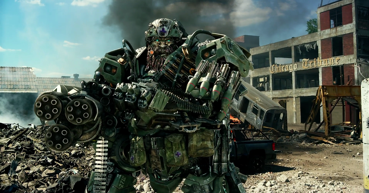 석방된 메가트론과 그의 부하들은 케이드와 오토봇이 본부로 삼고 있는 자동차 폐차장으로 간다. 사태를 알아차린 케이드와 오토봇은 폐차장 공장을 서둘러 빠져나간다. 메가트론과 그의 부하들이 케이드 일행을 추격하고, 그들은 어느 황량한 마을에서 마주친다. 케이드와 오토봇, 그리고 디셉티콘 사이에는 격렬한 전투가 벌어지고, 곧 TRF 마저 이 싸움에 가담한다. 케이드는 TRF의 드론에게 쫓기다가 코그맨이라는 고대 트랜스포머의 도움을 받는다. 그는 타리스먼에 대해 자세히 설명하겠다고 하며 케이드를 그의 영주인 영국 귀족 에드먼드 버튼에게 데려간다.