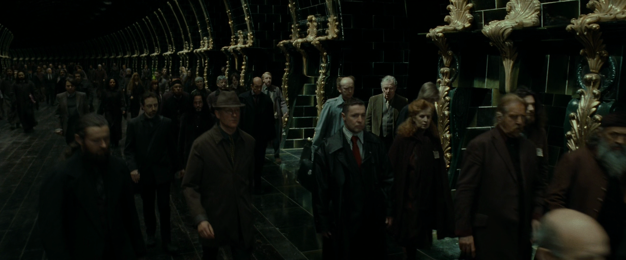 이즈음 해리 일행이 여행을 하고 있는 동안에도 볼드모트 경의 위협은 마법계 전체에까지 미치고 있었다. 마법성은 죽음을 먹는 사람에게 점거되고, 마법장관 스크림저는 살해되고, 보그와트 마법학교는 새로이 스네이프가 교장으로 취임하여 죽음을 먹는 자들 손에 떨어져 버렸다. 죽음을 먹는 자는 볼드모트 경의 명령을 받아 해리를 산채로 잡으려 하고 있다.