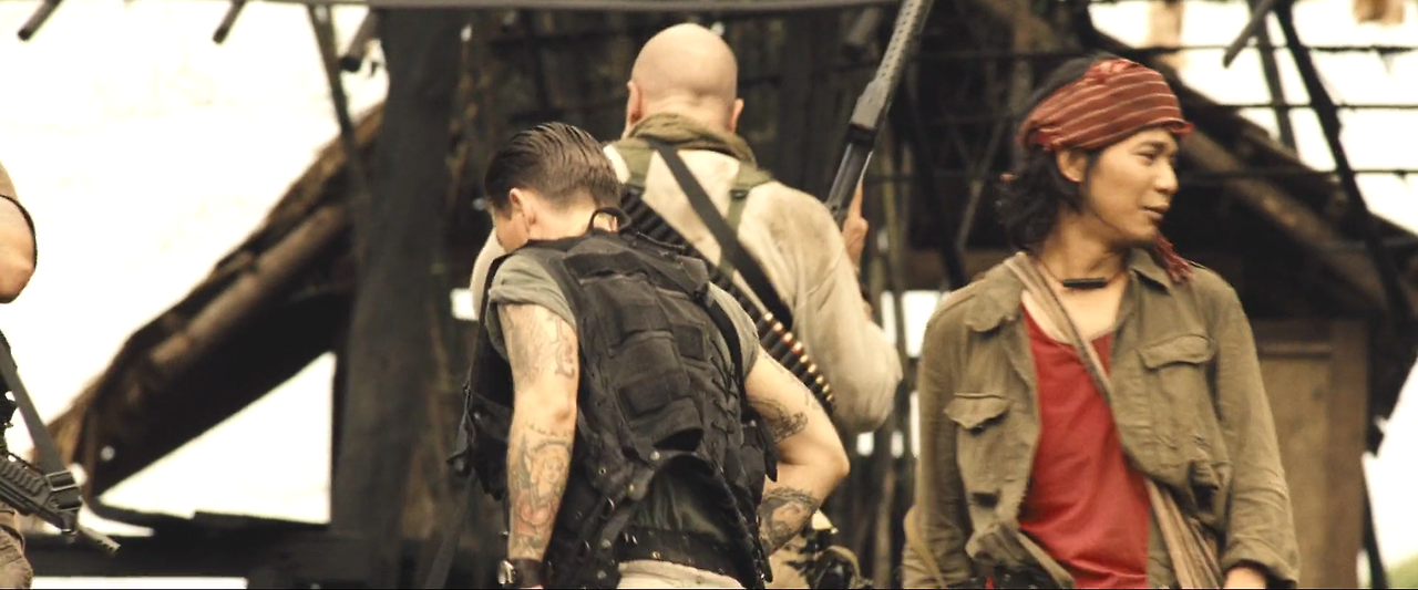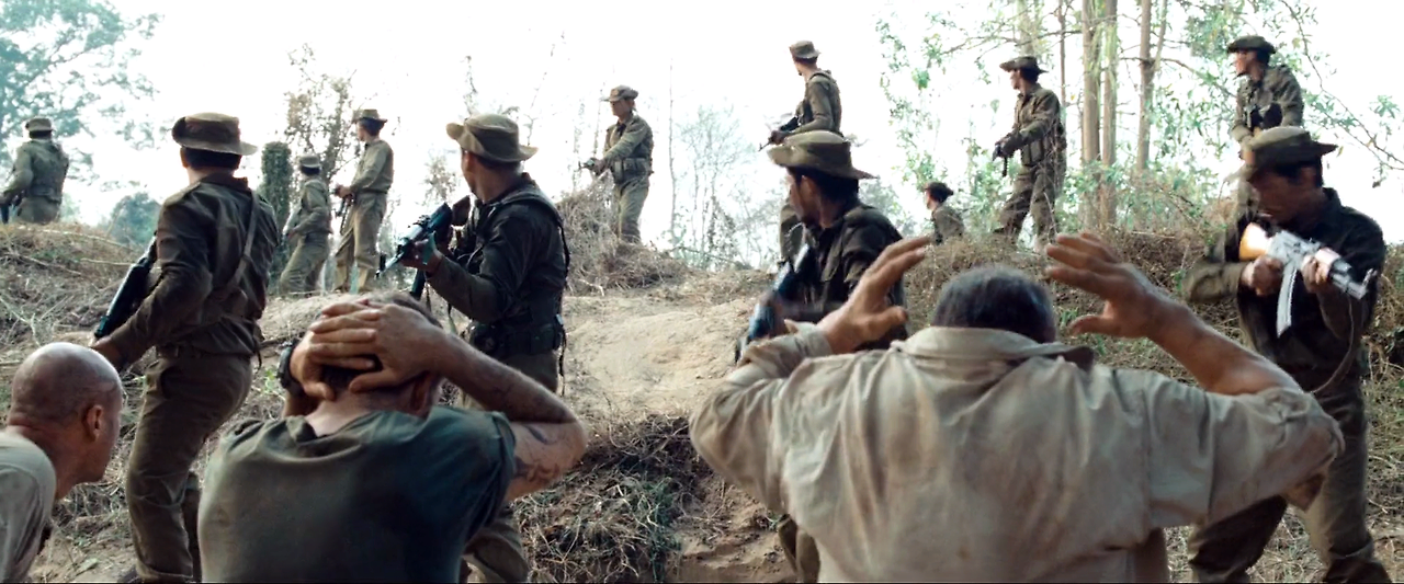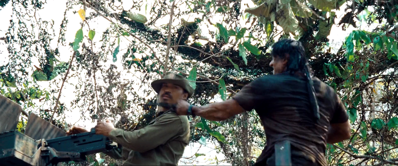 이 모습을 보고 용병대는 이 작전을 계속할지 말아야 할지 논쟁을 벌이는데, 그때 다시 버마군들이 나타나 주민들을 잔인하게 학살한다. 이 모습을 본 용병대는 겁에 질려 조용히 이곳을 떠나자고 하는데, 그때 람보가 나타나 학살 현장에 있는 미얀마 군인들을 전멸시킨다. 용병들은 미얀마 군이 눈치채기 전에 빨리 도망가자고 하지만, 람보의 말에 따라 NGO 단체를 구출작전을 계속하기로 한다.
