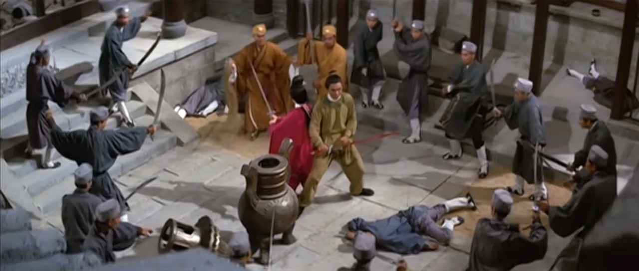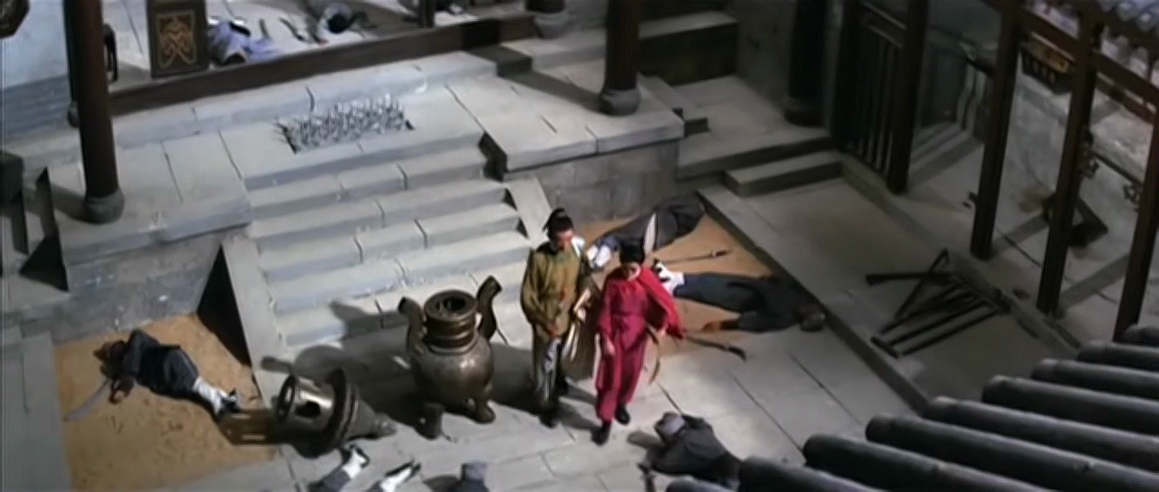 귀오는 감룡이 던진 표창을 보고, 그가 마차를 강탈한 사람들의 우두머리라는 사실을 알아차린다. 그렇지만 귀오는 아직 홍련파의 정체를 몰랐기 때문에 오히려 감룡을 비롯한 진가의 사람들이 도둑인 것으로 오해한다. 귀오는 하루도 도둑의 소굴에 있을 수 없다고 생각하여 그날로 진가를 떠나겠다고 결심한다. 이 말을 연주에게 하니, 연주는 이미 귀오의 아내가 되었으므로 자신도 귀오와 함께 가겠다고 따라나선다. 그러나 진가에서는 가족들이 가장의 허락없이 함부로 집안을 떠날 수 없다. 떠나기 위해서는 그들을 가로막는 가족들을 물리쳐야 한다. 이 설정은 영화 <당랑>(螳螂)과 비슷하다. 당랑에서도 이와 비슷한 장면이 나오는데, 아마 이 영화에서 차용한 것 같다.