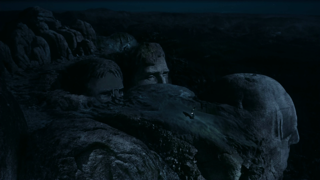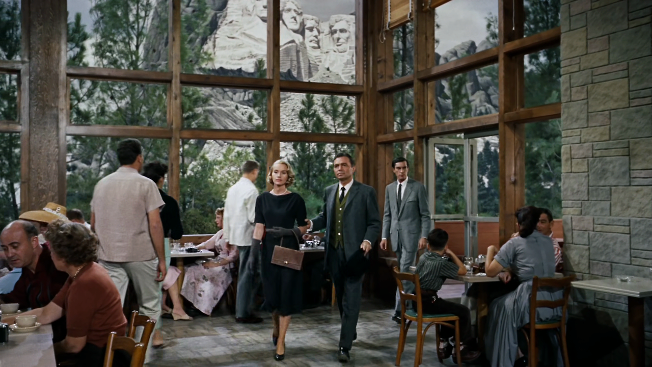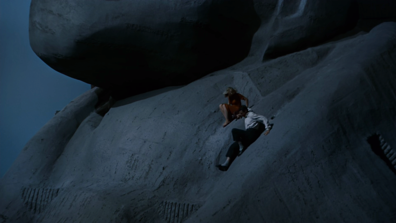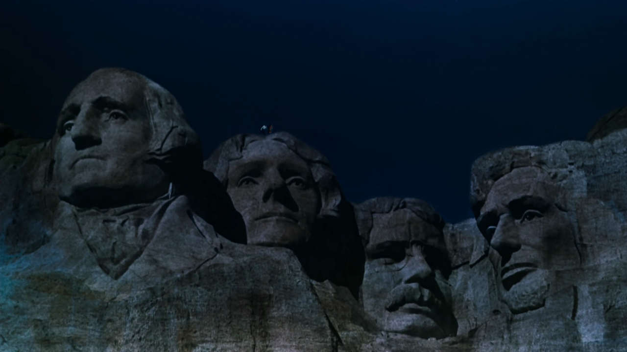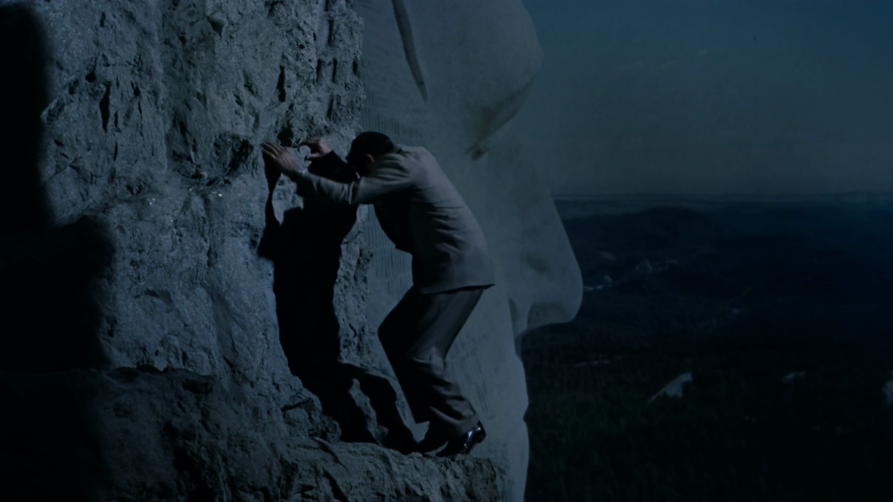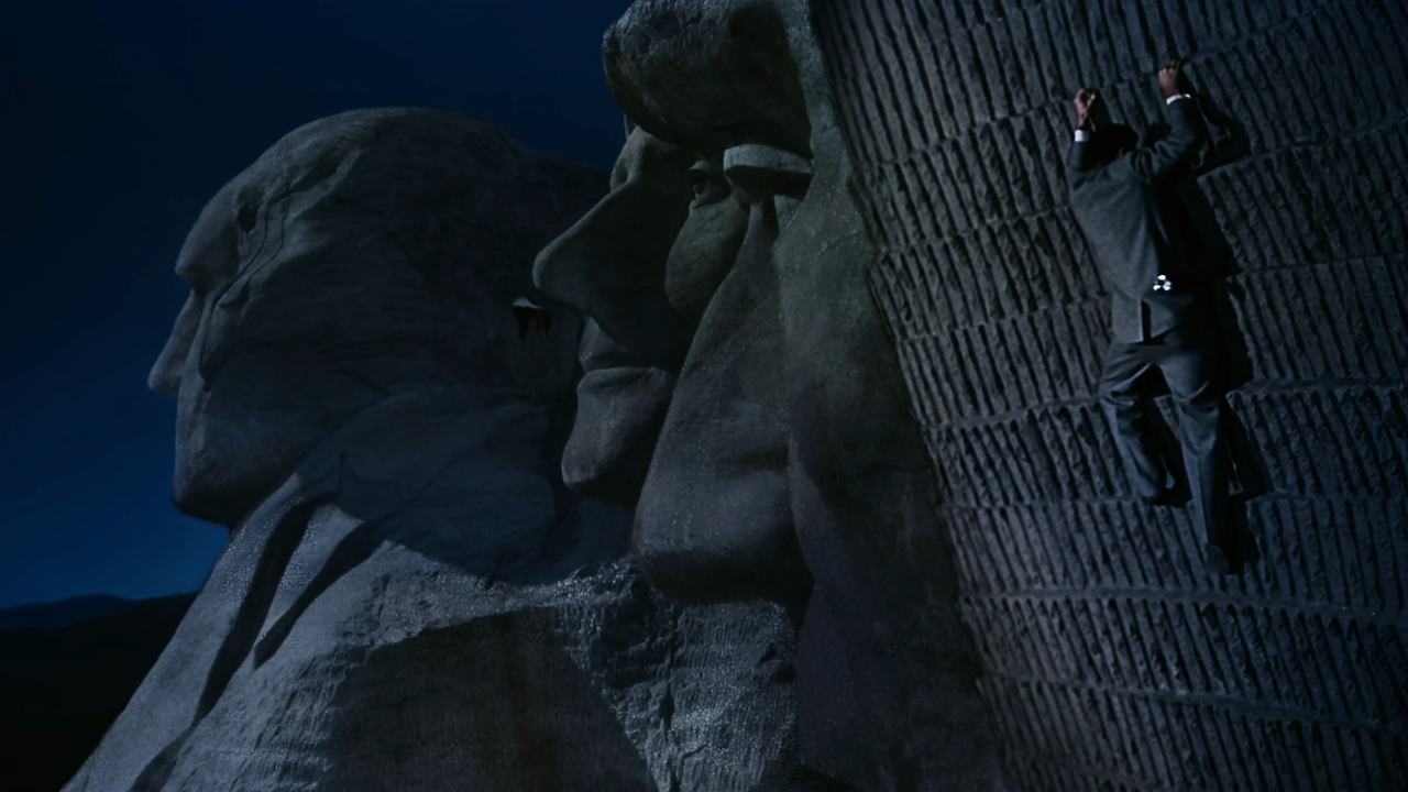 영화의 마지막 20분 정도는 러시모어 산의 대통령 석상에서 벌이는 쫓고 쫓기는 추격전으로서 이 영화의 클라이맥스라 할 수 있을 것이다. 이 장면은 정말 손에 땀을 쥐게 한다. 그러면서도 계속 떠오르는 생각은 이곳은 미국의 문화재일 텐데, 이렇게 석상을 밟고 다니며, 석상을 오르내리며 영화촬영을 해도 괜찮은지 하는 의문이었다. 국민학교 다닐 때 경주로 여행 가서는 석굴암에 들어가 아이들이 석굴암 안에 있는 불상에 기어오르기도 하고 하였다. 요즘 같으면 상상도 못 할 일이다. 그때만 해도 그만큼 문화재에 대한 인식이 부족한 때였다. 이 영화가 제작된 것은 지금부터 60년 전이라 미국도 그때는 문화재에 대한 인식이 부족하였나 하는 생각이 들었다.
