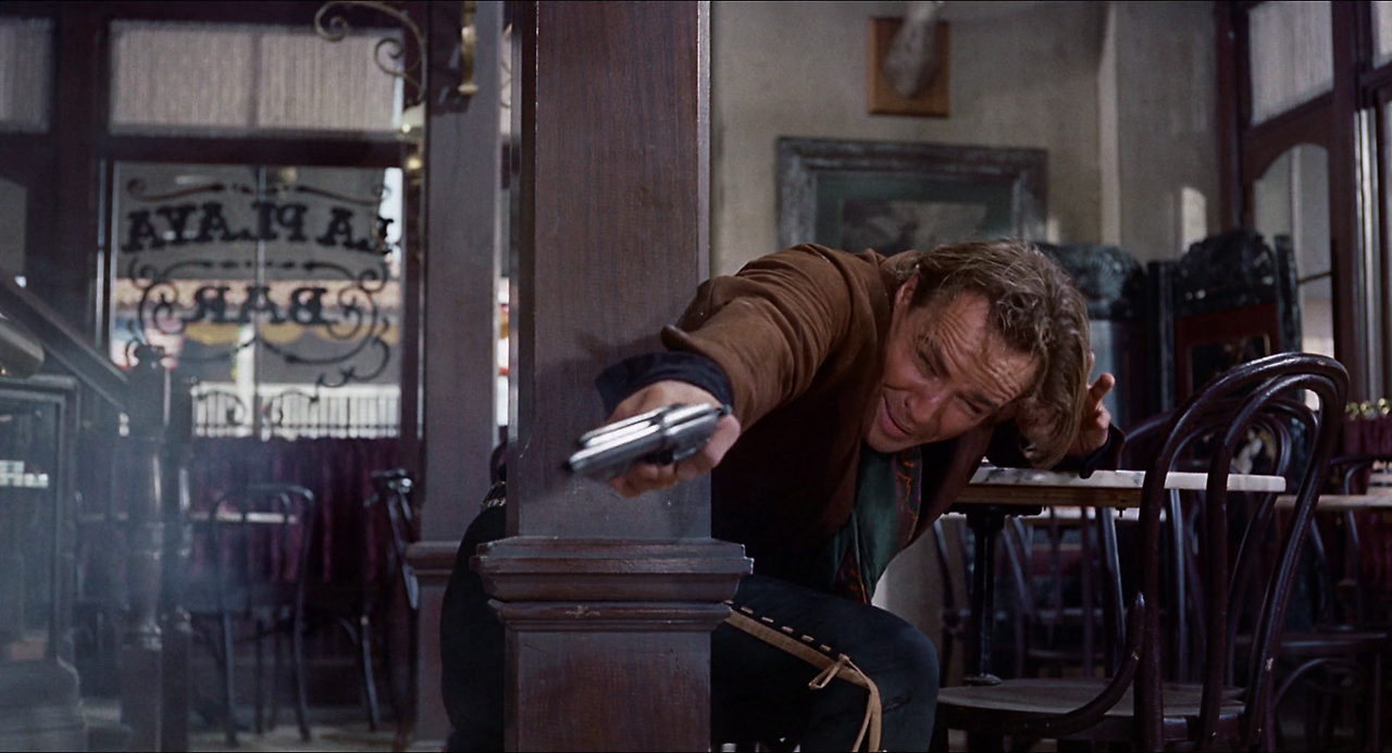 다음날 마을에서 누군가가 리오에게 시비를 걸어온다. 리오는 어쩔 수 없이 총을 뽑아 그를 쏘아 죽인다. 이 소동을 빌미로 대디는 리오를 체포한다. 리오가 정당방위라고 주장하였지만, 대디는 그 말을 듣지 않고 리오에게 가혹하게 채찍질을 하고는 다시는 총을 쏘지 못하도록 오른쪽 손을 짓이겨버리고 추방해 버린다.