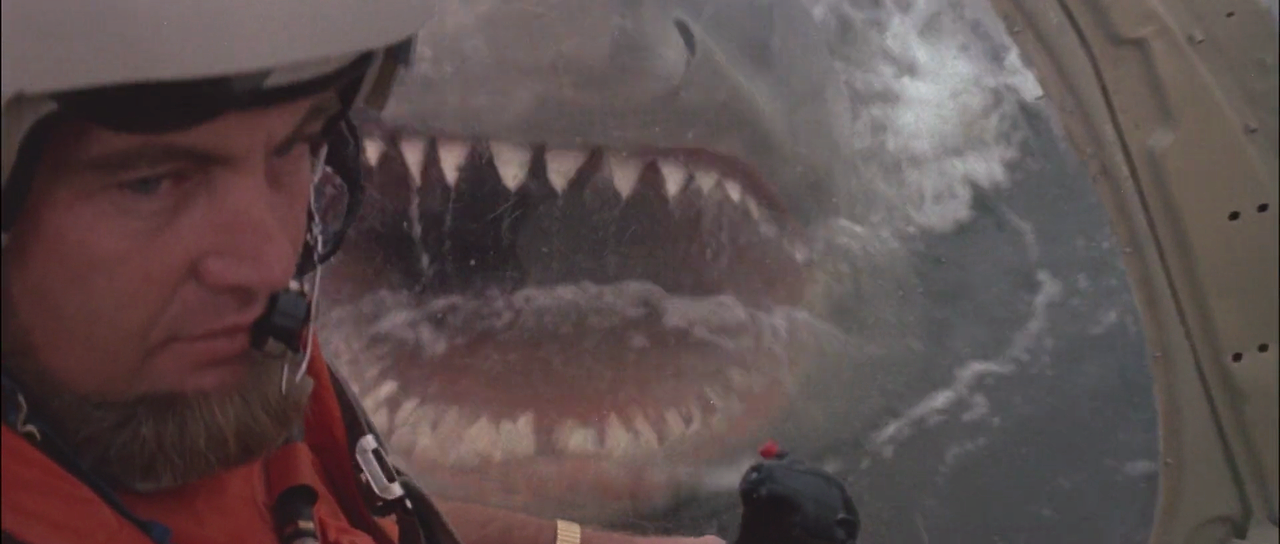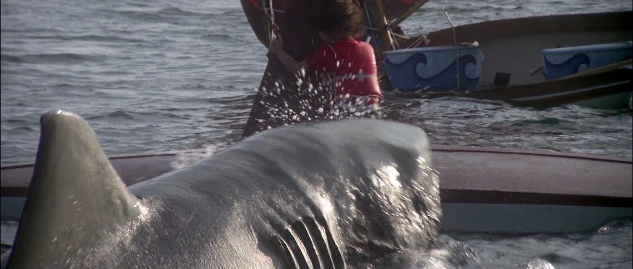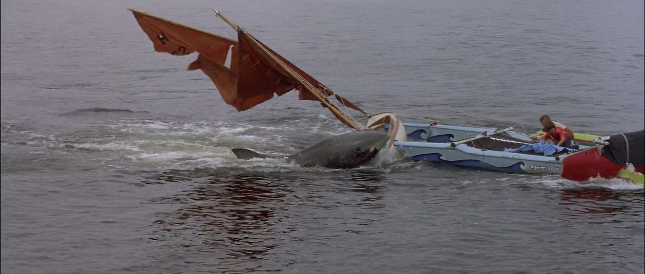 다시 상어와의 치열한 싸움이 시작되는데, 후퍼가 바다에 들어가 상어에게 독이든 주사를 놓겠다는 시도도 실패로 끝난다. 상어의 공격은 더욱 거세지는데, 결국 퀸트가 갑판에서 미끄러져 상어에게 죽는다. 절체절명의 위기에 처한 브로디와 후퍼는 마지막 수단으로 잠수용 산소탱크를 이용하기로 한다. 공격해 오는 상어의 입에 산소 탱크를 던져 넣고, 총을 쏜다. 총은 산소 탱크에 명중하여 대폭발을 일으킨다.