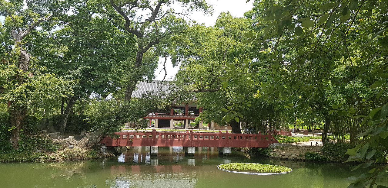 낮의 광한루는 밤에 본 광한루와 다른 느낌을 준다. 어젯밤에 주요 정자들은 모두 둘러보았으므로, 연못 주위를 거닐며 나무 그늘 아래서 산책을 즐겼다. 광한루 하면 제일 먼저 머리에 떠오르는 것이 연못에 있는 잉어들이다. 20여 년 전 광한루에 왔을 때는 연못 속에 거의 1미터는 되어 보이는 잉어들이 우글거렸다. 연못에는 지금도 잉어들이 많아 먹이를 주면 모여들지만, 그때에 비해서는 잉어의 숫자도 적고 크기도 작은 것 같다. 검은색의 일반 잉어 외에 비단잉어들도 상당히 많았다.