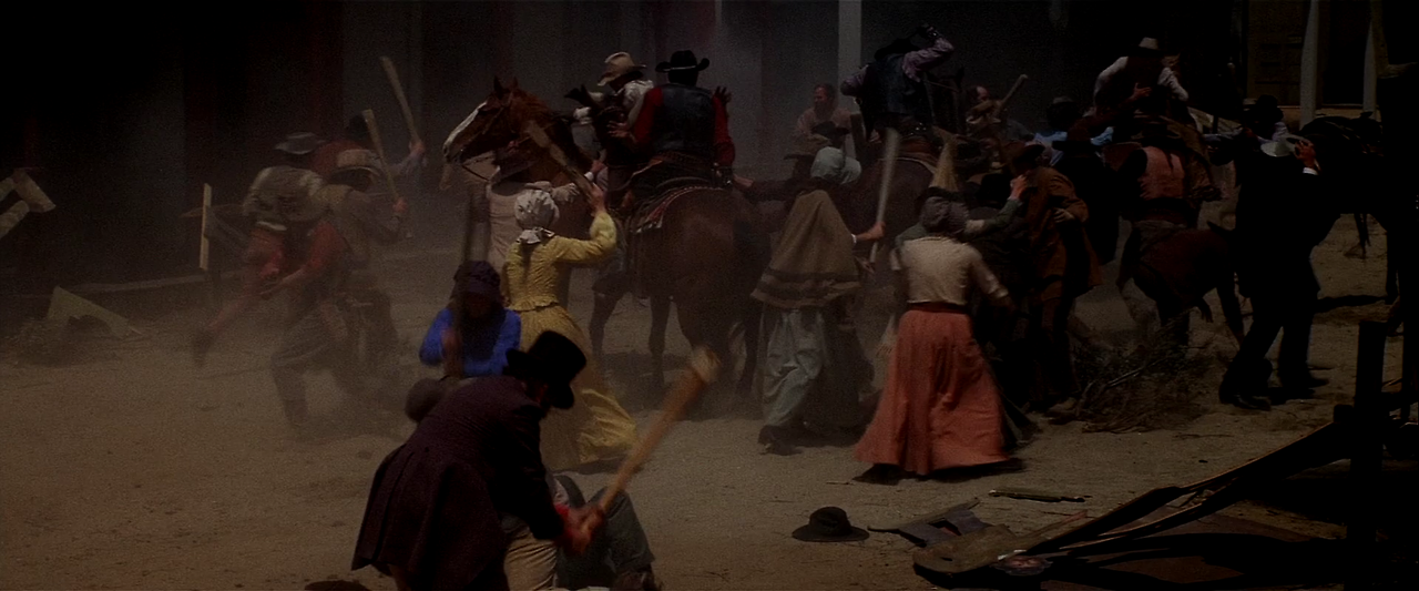 드디어 서부극 사상 남을 만한 일대 격전이 벌어졌다. 치열한 싸움으로 오픈 세트의 벽이 넘어지고, 세트에서 튀어나온 악당들과 주민들은 현대 미국 거리에서 치열한 싸움을 벌인다.