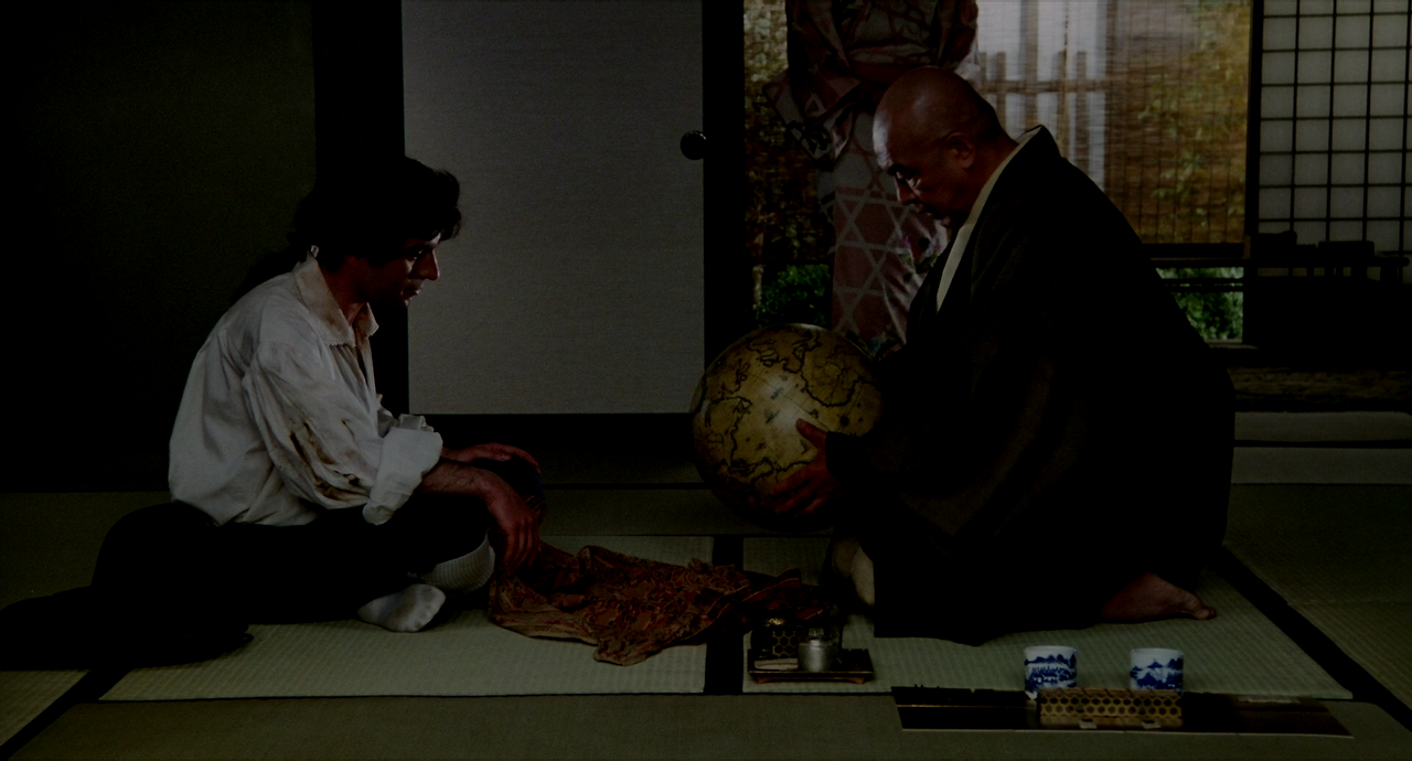 히데요시와 리큐 두 사람이 모셨던 오다 노부나가(職田信長)는 아케치 미츠히데의 쿠데타로 혼노지(本能寺)에서 죽었다. 오다의 유품인 지구의를 들고 리큐를 찾아온 포르투갈 신부 스테판은 “혼노지에서 자살하려는 노부나가는 마치 차실에 들어가려는 사람 같았다.”라고 말한다.