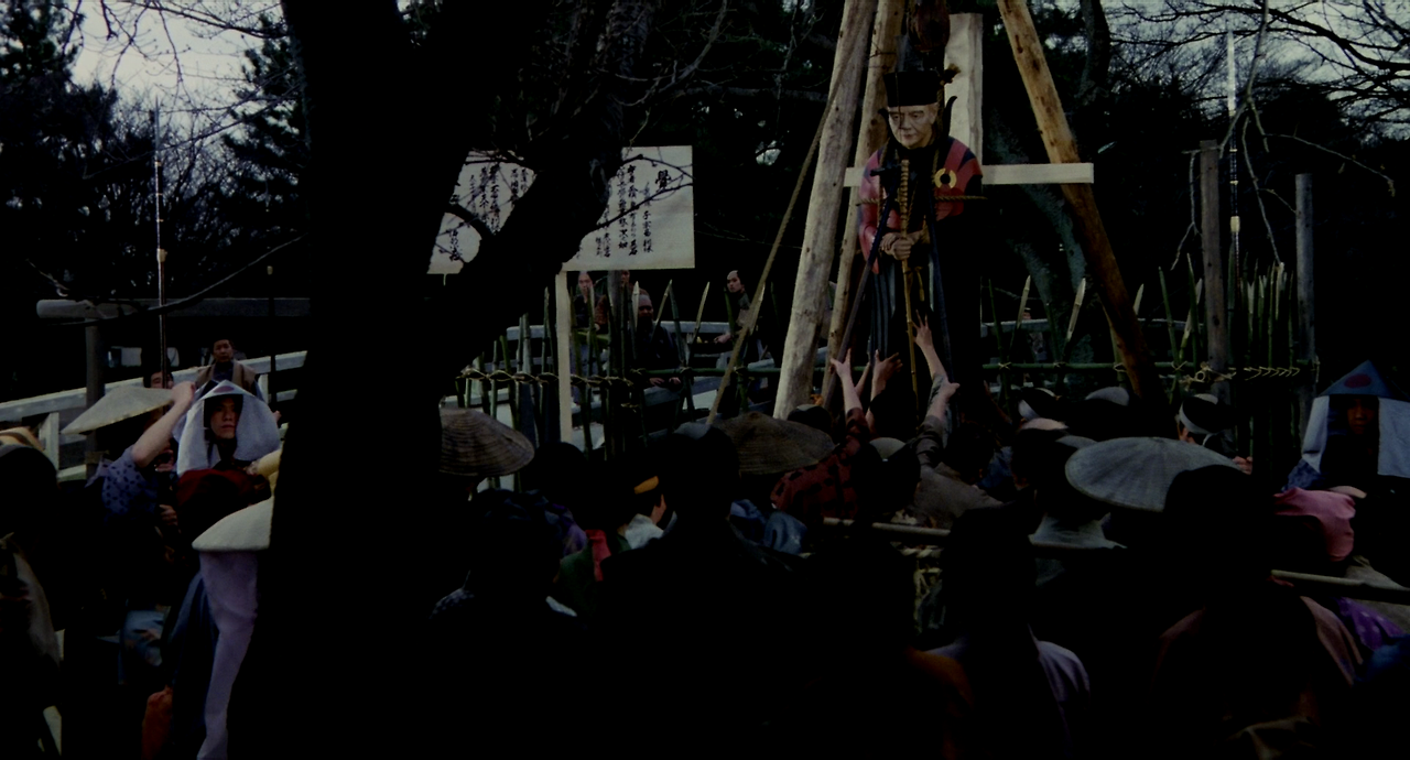산문에 있던 리큐의 목상은 부서져 목이 매달렸다. 리큐는 쓸쓸히 고향으로 돌아왔다. 리큐 앞으로 어떡하든 히데요시에게 사과의 말을 전달하려는 사람으로부터 편지가 왔지만, 리큐는 머리를 숙일 만한 일은 한 적이 없다며 거절한다. 그의 그런 태도에 화가 난 히데요시는 절복을 명한다.