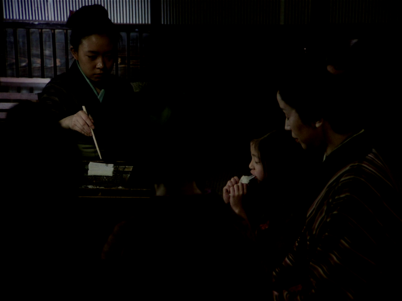 세월은 흘러 바닷가 마을에는 선로공사가 진행되고 있었다. 잠시 일을 쉬고 있던 노동자 한 사람이 반도의 끝에 있는 숲 속 나뭇가지에 빨간 천이 걸려있는 것을 발견한다. 그리로 가 보니 그 아래에는 누구의 눈에도 띄지 않게 샤미센과 사람의 해골이 놓여 있었다..