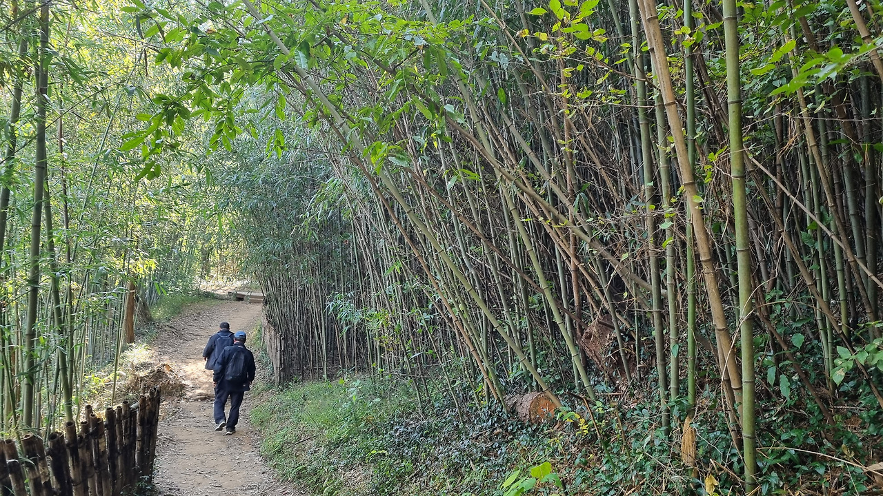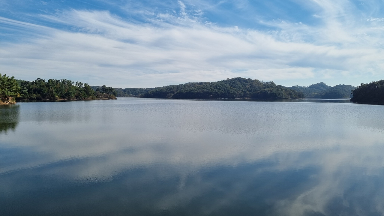 먼저 계획에 따라 청암산 둘레길을 걷기로 했다. 청암산은 군산 외곽에 있는 그다지 높지 않은 산인데, 산자락에 있는 큰 호수를 따라 둘레길이 잘 정비되어 있다. 도착해 보니 생각보다 훨씬 큰 호수이다. 연천에 있는 산정호수보다 훨씬 더 넓다. 그 호수 옆을 따라 아주 편한 숲길이 조성되어 있다. 아주 평탄하고 걷기 쉬운 길이다. 조금 걸으니 대숲이 나타난다 빽빽하게 우거진 대나무 숲 사이로 길이 계속된다. 우리나라에서는 쉽게 보기 힘들 정도의 굵은 대나무이다. 담양에 있는 대나무 테마공원인 죽녹원에 몇 번 가 본 적이 있는데, 그곳보다 여기가 오히려 나은 것 같다. 담양 죽녹원이 인공적인 것이라면, 여긴 좀 더 자연에 가깝다.