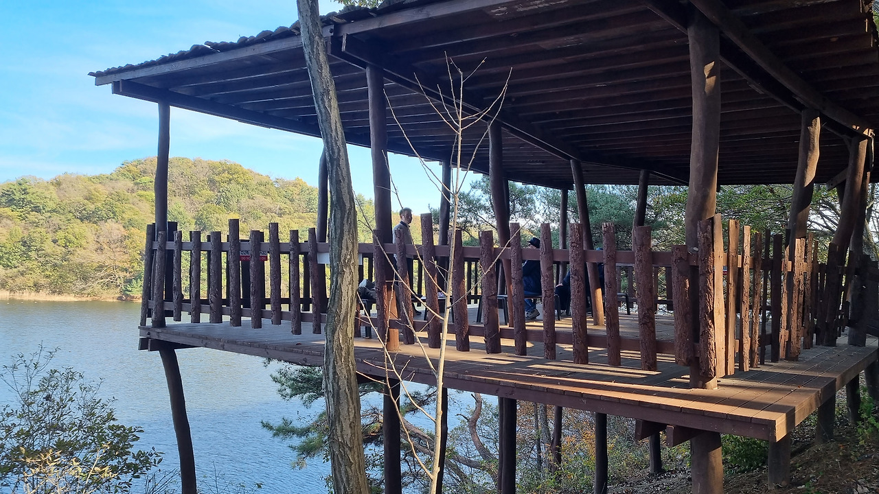 친구들과 웃고 떠들다 보니 산책길이 금방이다. 고관절이 아파 못 걷겠다던 친구는 펄펄 날듯이 앞서간다. "제일 빠른 길은 친구와 함께 걷는 길"이란 말이 맞는 것 같다. 어느새 목표지점까지 왔다. 이후 스케줄 때문에 호수 주위를 완전 일주할 수는 없으며 돌아가야 한다. 쉼터가 보이길래 잠시 쉬다가 다시 오던 길로 되돌아왔다. 두 시간 이상 걸은 것 같다. 요즘 거의 매일 집에 들어박혀 있었는데, 오랜만에 많이 걸었다.