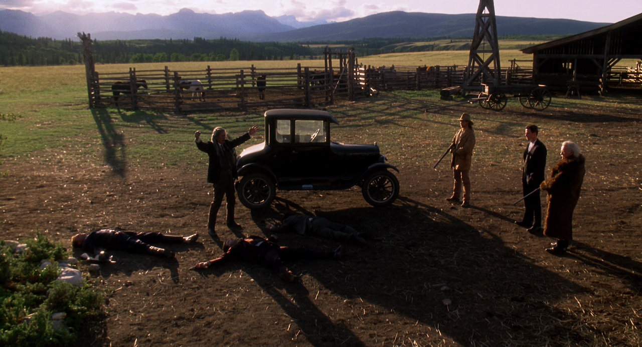 트리스탄에게 복수를 하기 위해 세 사람의 남자가 찾아온다. 트리스탄은 각오를 하고 있었지만, 러들로가 두 사람을 쏘아 죽이고, 총을 쏘려 하는 남은 한 사람을 그때 달려온 알프레드가 쏘아 죽인다. 그리고 부자와 형제는 오랫동안 가졌던 마음의 앙금을 풀어버린다.