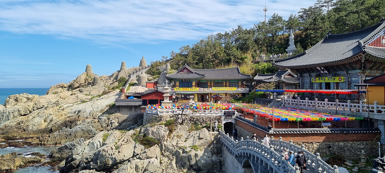통도사를 출발하여 이제 해안 쪽으로 달린다. 오늘은 일찍 휴양림으로 복귀하여 어둡기 전에 야외에서 저녁 식사를 할 예정이다. 기장의 해안 쪽 몇 곳을 둘러보고 장을 본후 휴양림으로 돌아가려 한다. 해동용궁사를 둘러본 후 일광해수욕장과 기장 죽도를 거쳐 기장시장에서 장을 본 후 휴양림으로 갈 계획이다.