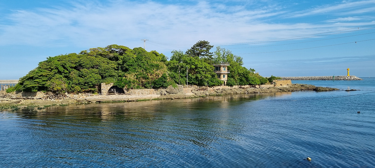 해동용궁사에서 북쪽으로 자동차를 달려 5분도 걸리지 않는 거리에 <죽도>가 있다. 죽도는 기장 연화리 앞 바다에 있는 작은 섬인데, 방파제 안에 자리잡고 있어 별로 섬이라는 생각도 들지 않는다. 해안에서 100미터 정도의 보행교가 놓여져 있어 걸어서 섬으로 들어갈 수 있다. 죽도은 2-3천평 정도 되어 보이는 작은 섬인데, 섬 전체가 숲으로 이루어져 있다. 섬 둘레에 담장이 쳐져 있으며, 2층짜리 작은 집이 있는 것을 보니 섬 전체가 사유지인 것 같다. 그래서 다리를 건너 섬으로 가더라도 관광객들은 섬 안으로는 들어갈 수 없고, 섬 주위의 물빠진 갯바위만 걸어 볼 수 있다. 지금 현재 섬에 사람은 살지 않는 것 같다.