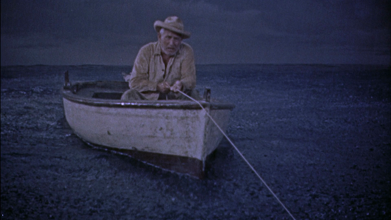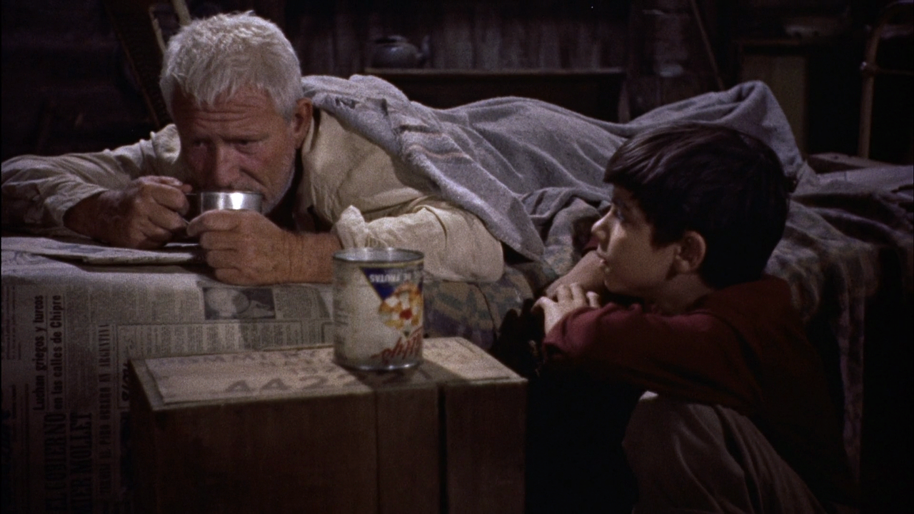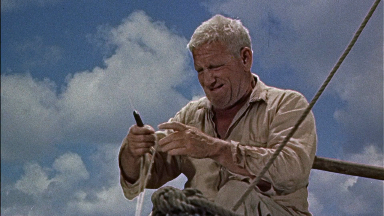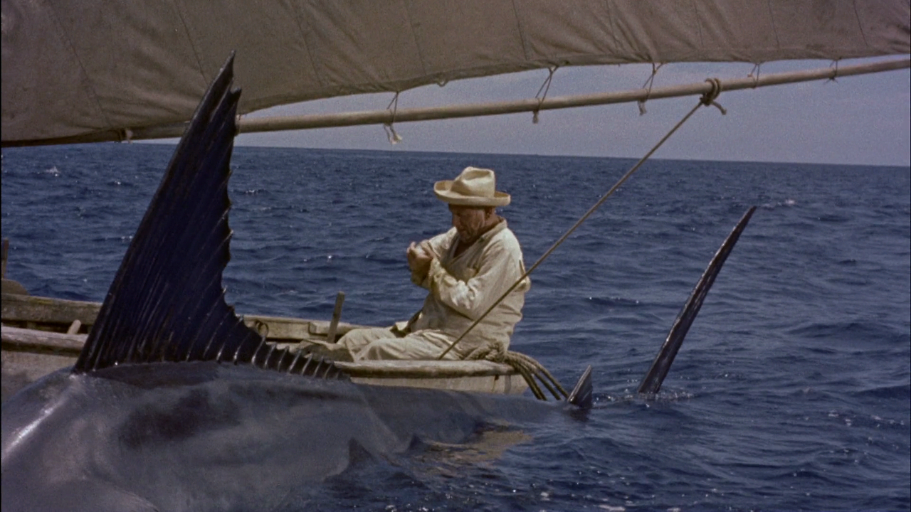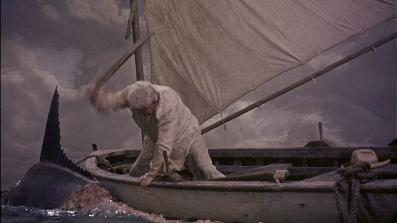 이 영화는 오랫동안 고기를 잡지 못했던 늙은 어부가 마지막으로 바다에 나가 그의 일생에서 가장 큰 고기를 잡았으나, 돌아오는 길에 상어 떼의 공격을 받아 결국은 뼈다귀만 남은 고기를 가져온다. 노인이 잡은 고기를 가져오는 동안 잠시 잠들어 사자꿈을 꾼 이야기, 그리고 프로야구 이야기 등이 지금도 생각난다. 이 영화는 아카데미상 작곡상을 수상하였다.