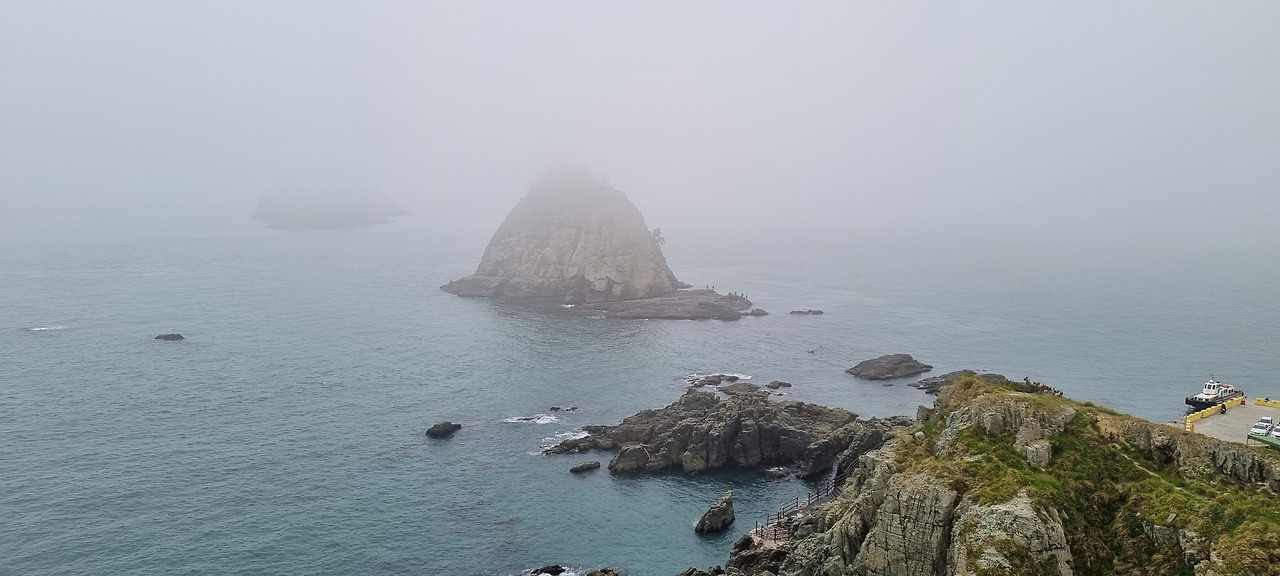 나는 가덕도가 아주 작은 섬인 줄 알았는데, 제법 큰 섬이다. 그리고 인터넷을 찾아보니 아주 아름다운 섬이라 한다. 면적이 21평방 킬로라 하는데, 이 정도면 상당히 큰 섬 축에 들어간다 할 것이다. 가덕도는 전형적인 남해의 섬이다. 우리나라의 섬에 있어서 남해의 섬과 서해의 섬은 확연히 다르다. 서해의 섬은 대부분 밋밋한 평지이지만, 남해의 섬은 대부분 산으로 이루어진 험한 지형을 가지고 있다. 가덕도도 섬에 평지는 거의 보이지 않고 대부분이 많은 산들로 이루어져 있다. 가장 높은 산은 500미터 정도가 되며, 300-400미터 정도 되는 산들은 매우 많아 보인다. 이런 곳에 어떻게 공항을 건설하지 하는 생각이 든다. 물론 섬 안에 공항에 짓기보다는 많은 부분 바다를 메워 공항을 건설하겠지만, 이렇게 높은 산 옆에 공항을 만들어도 괜찮을지 하는 생각이 든다. 오다 보니 바다 안개도 무척 짙은데, 오늘이 특별한 날인지 아니면 늘 그런지는 잘 모르겠다. 여하튼 바다를 메워 공항을 만들려면 여기 있는 산 몇 개는 뭉개야 할 텐데 그것도 마음에 걸린다.